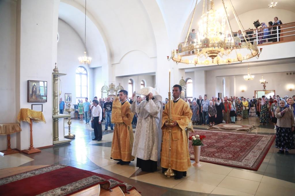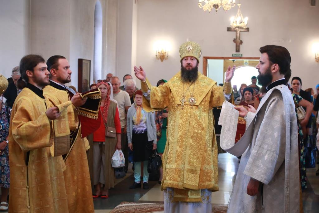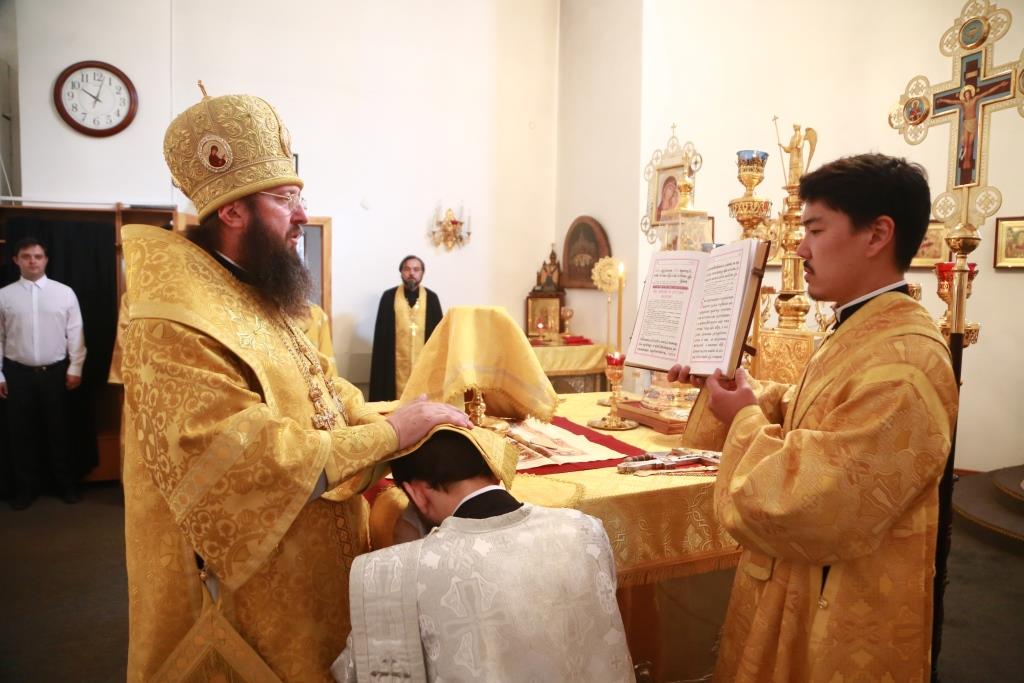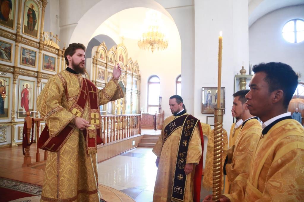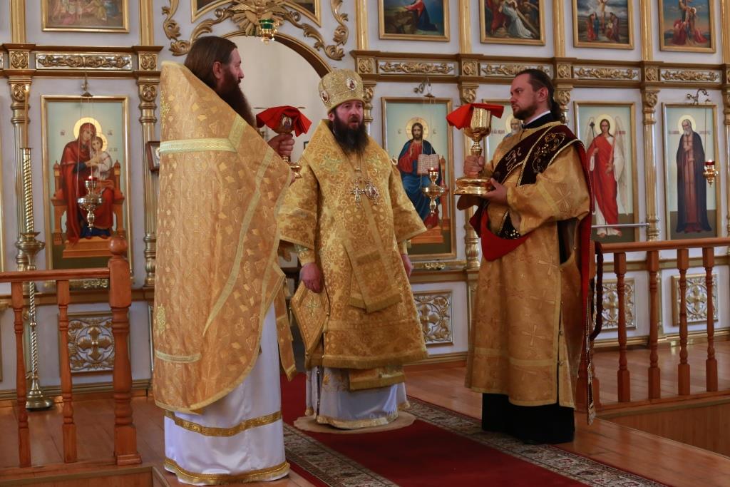 Архипастырю сослужили: духовник епархии архимандрит Спиридон (Теплухин), духовник Знаменско-Абалацкого женского монастыря города Семипалатинска игумен Аникита (Макаров), ключарь кафедрального собора иеромонах Никодим (Авдеев), клирик собора иерей Константин Дьяков, протодиакон Андрей Дудник, иеродиакон Мефодий (Шевчук), иеродиакон Тимофей (Хитрич).