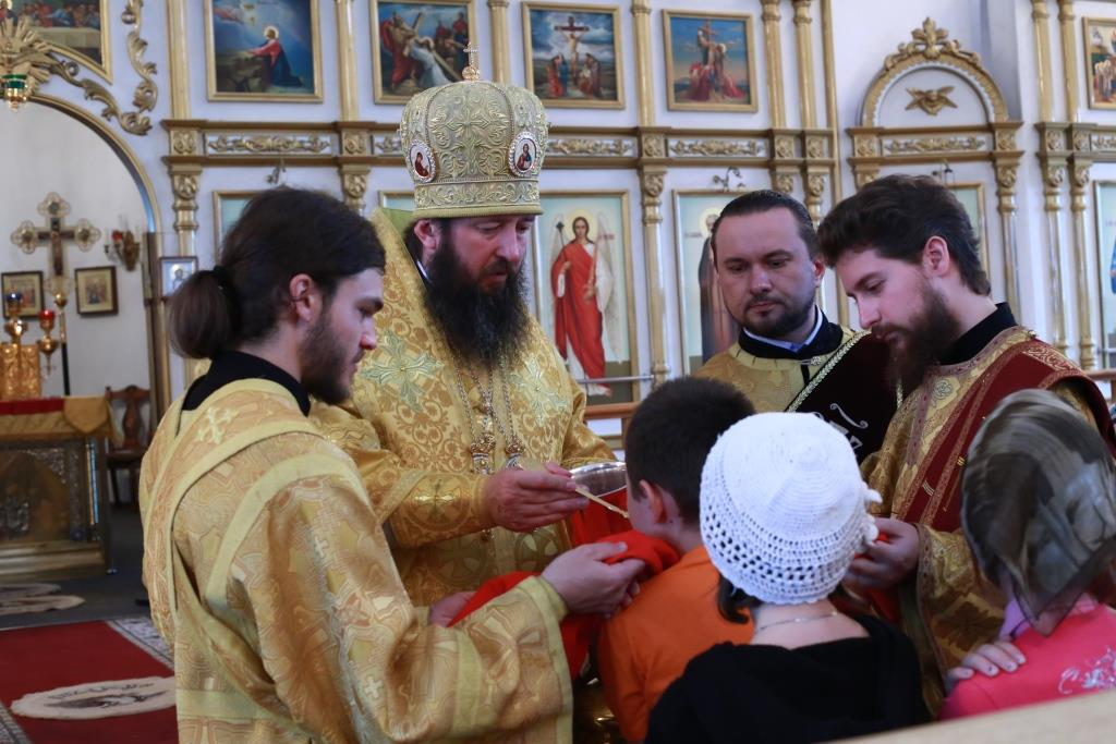 Управляющий Усть-Каменогорской и Семипалатинской епархией Преосвященнейший епископ Амфилохий возглавил служение Божественной Литургии святителя Иоанна Златоуста в кафедральном соборе во имя апостола Андрея Первозванного города Усть-Каменогорска.