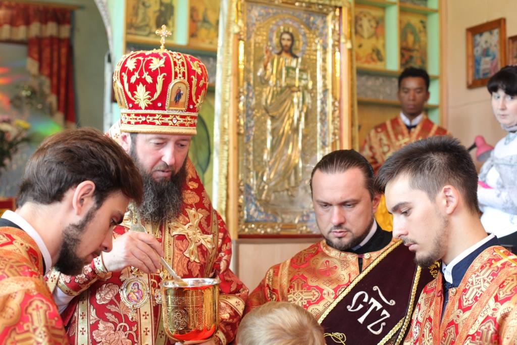Владыке епископу сослужили: настоятель храма протоиерей Сергий Семченко, настоятель Свято-Даниловского храма города Зыряновска иерей Михаил Арабов, руководитель молодежного отдела епархии иерей Вячеслав Гутов, протодиакон Андрей Дудник.