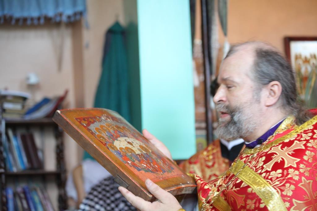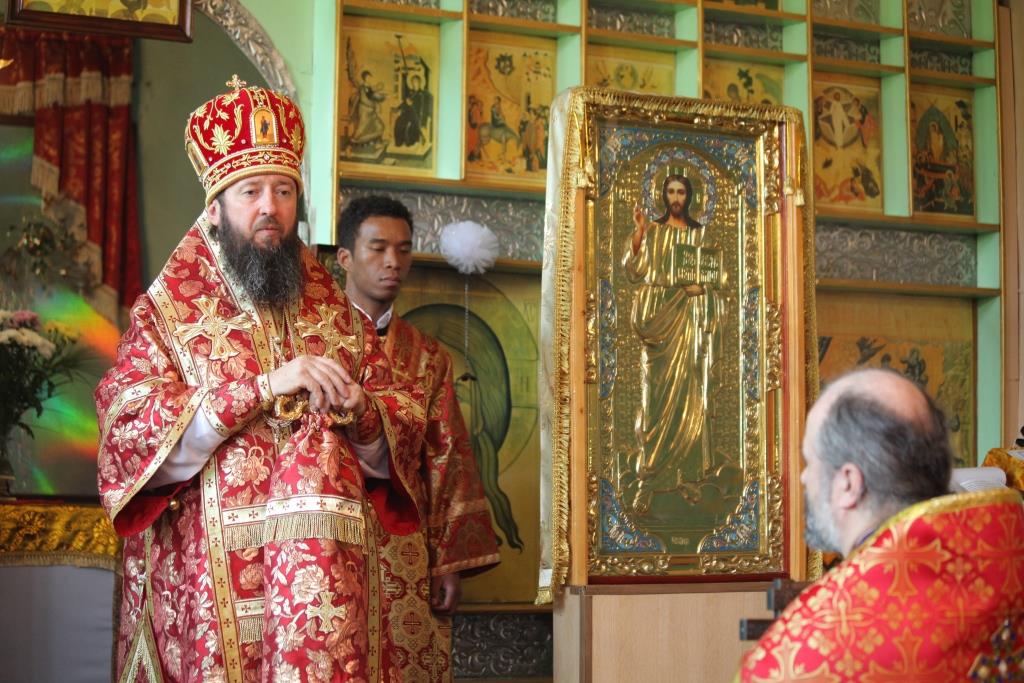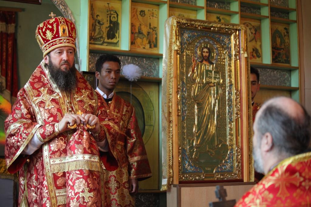 В ответном слове протоиерей Сергий Семченко от лица всей общины поблагодарил Архипастыря, духовенство и всех паломников за радость совместной молитвы в день престольного праздника и преподнес в дар Владыке старинную икону Тайной Вечери.