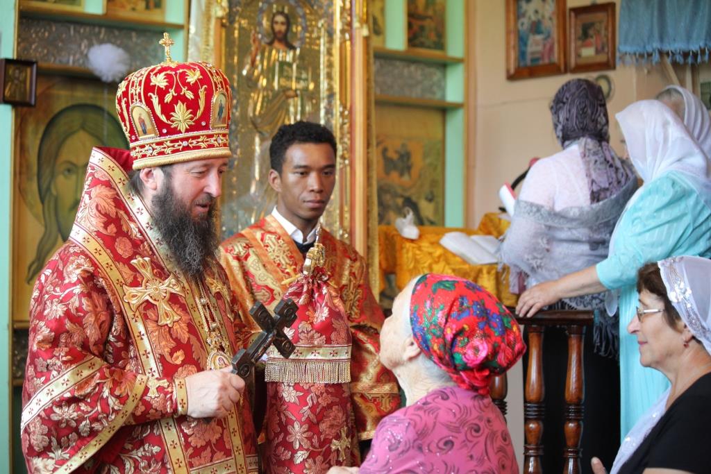 В завершение Божественной Литургии был совершен крестный ход, после которого епископ Амфилохий от лица всех собравшихся вознес молитву пророку Божию Илие - небесному покровителю православной общины города Серебрянска, после чего окропил прихожан святой водой. Затем Владыка епископ обратился к народу Божию со словами Архипастырской проповеди.
