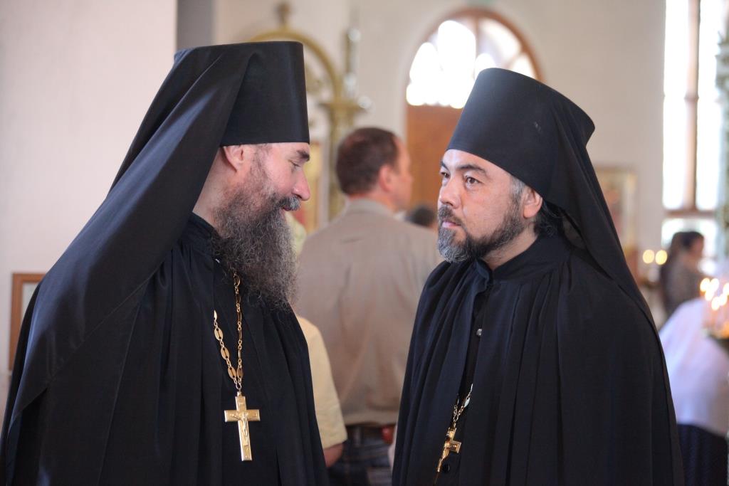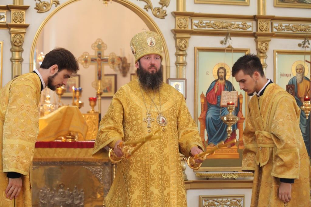 Владыке епископу сослужили: духовник епархии архимандрит Спиридон (Теплухин), ключарь кафедрального собора иеромонах Никодим (Авдеев), клирик собора иерей Алексий Клепиков, заведующий канцелярией епархии иерей Константин Дьяков, клирик Знаменско-Абалацкого женского монастыря города Семипалатинска иеромонах Мануил (Чабанов), протодиаконы Георгий Засыпкин и Андрей Дудник, иеродиакон Мефодий (Шевчук), иеродиакон Тимофей (Хитрич).