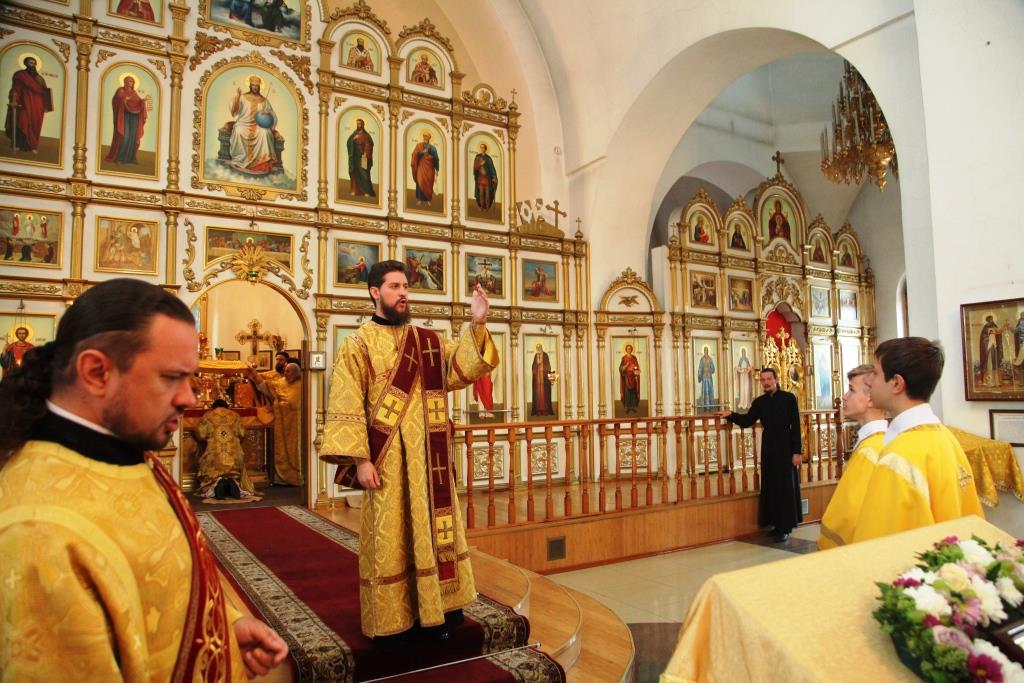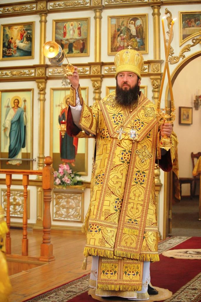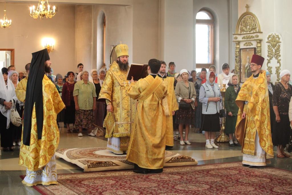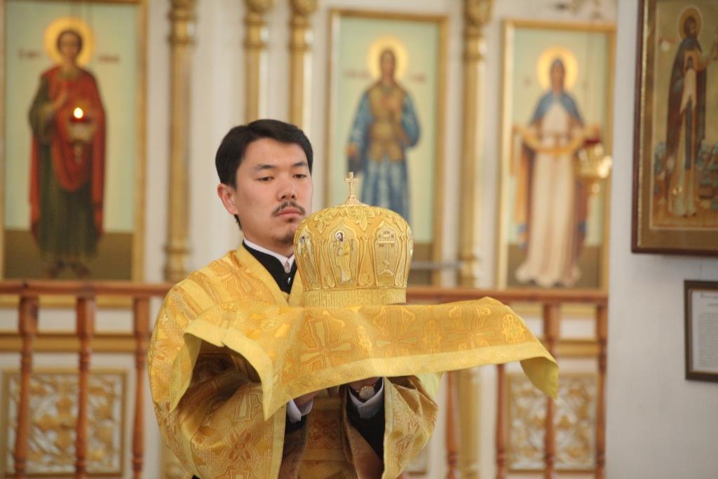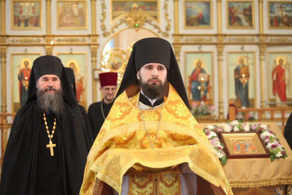 Преосвященному епископу сослужили: духовник епархии архимандрит Спиридон (Теплухин), ключарь кафедрального собора иеромонах Никодим (Авдеев); заведующий канцелярией епархии иерей Константин Дьяков; клирик Знаменско-Абалацкого женского монастыря города Семипалатинска иеромонах Мануил (Чабанов), протодиаконы Георгий Засыпкин и Андрей Дудник, иеродиакон Мефодий (Шевчук).
