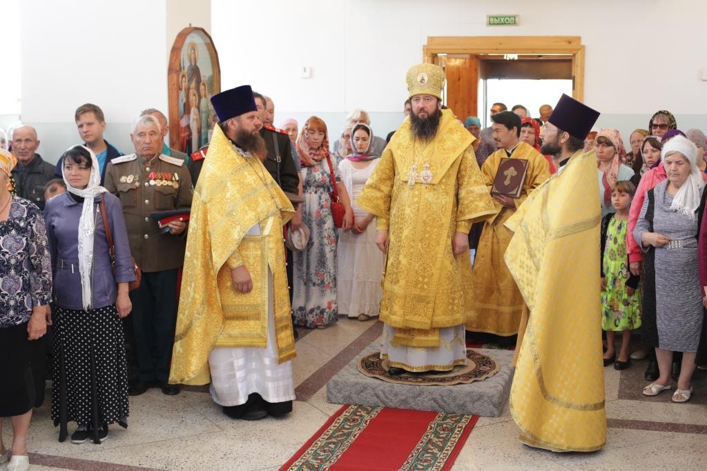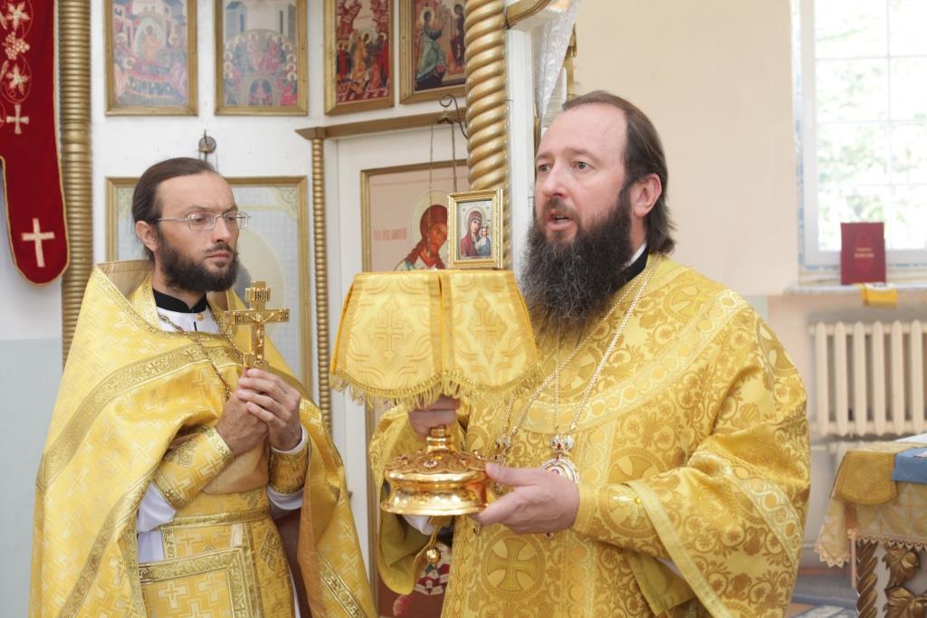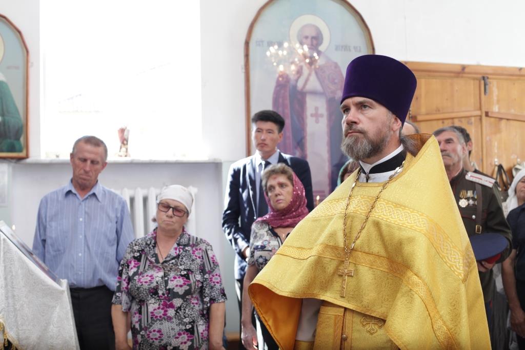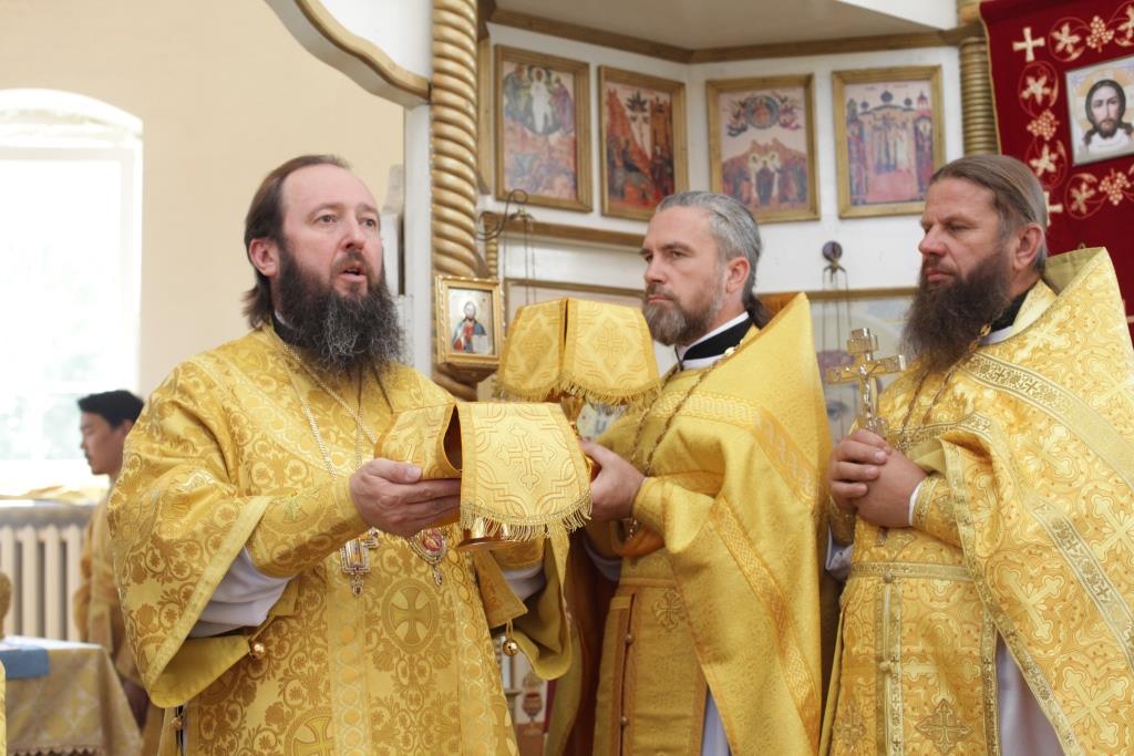 Его Преосвященству сослужили: благочинный Усть-Каменогорского церковного округа, и.о. секретаря епархиального управления иерей Алексий Анищенко, настоятель храма протоиерей Роман Сычук, настоятель храма Преображения Господня г.Шемонаиха протоиерей Петр Хонин.