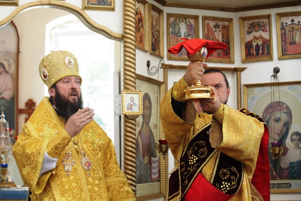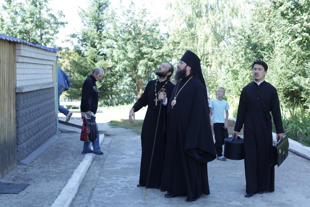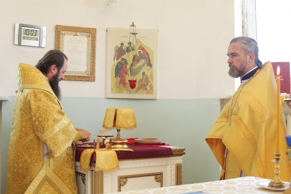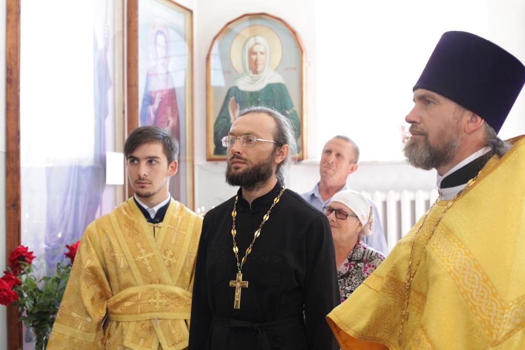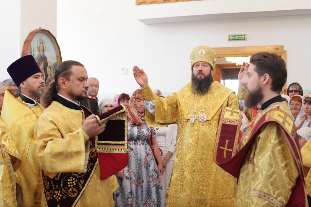 Его Преосвященству сослужили: благочинный Усть-Каменогорского церковного округа, и.о. секретаря епархиального управления иерей Алексий Анищенко, настоятель храма протоиерей Роман Сычук, настоятель храма Преображения Господня г.Шемонаиха протоиерей Петр Хонин.