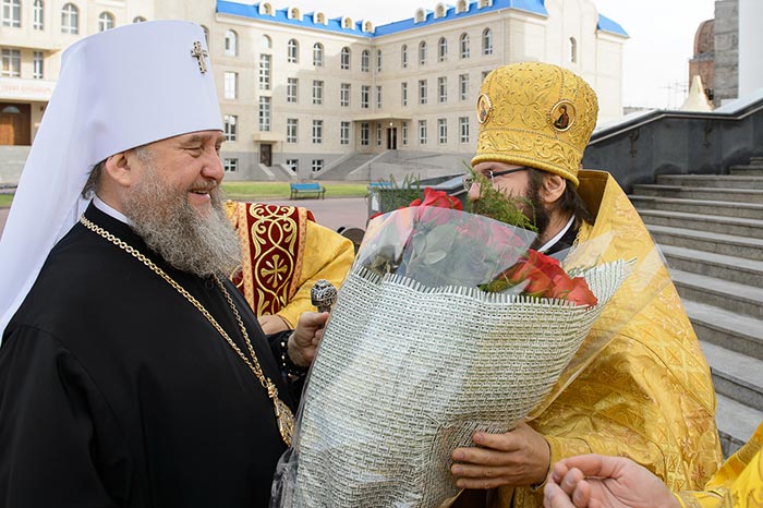 С днем тезоименитства владыку митрополита от лица архипастырей, священнослужителей и мирян Православной Церкви Казахстана поздравил архиепископ Чимкентский и Таразский Елевферий.