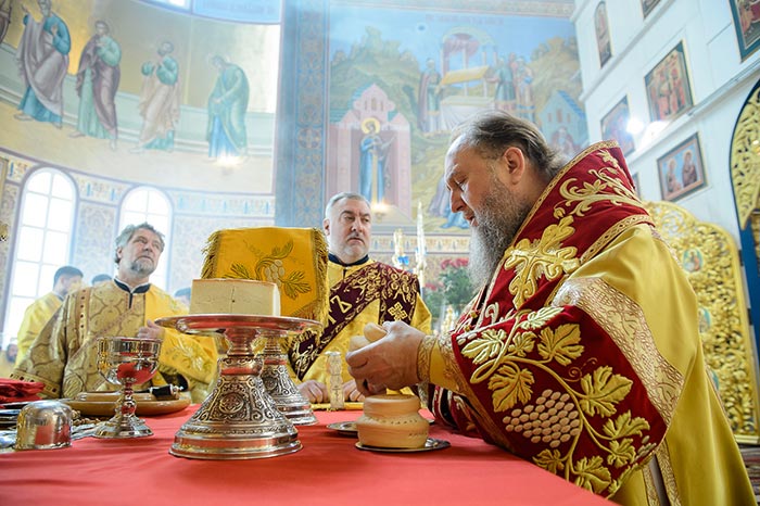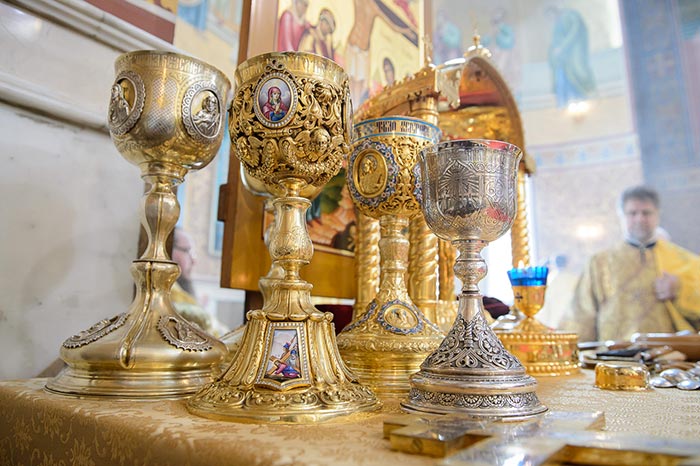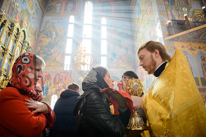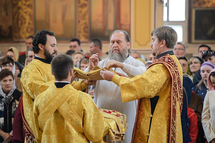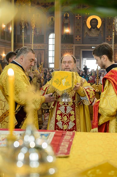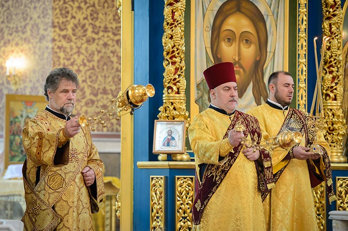 Проповедь после запричастного стиха произнес руководитель информационного отдела Митрополичьего округа протоиерей Евгений Иванов.