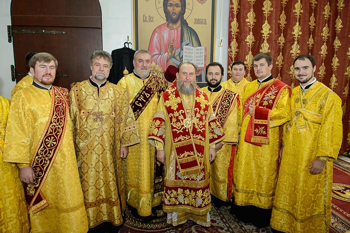 Главе Православной Церкви Казахстана сослужили архипастыри Казахстана, прибывшие в столицу на заседание Синода Казахстанского Митрополичьего округа: архиепископ Уральский и Актюбинский Антоний; архиепископ Чимкентский и Таразский Елевферий; епископ Костанайский и Рудненский Анатолий; викарий Астанайской епархии, епископ Талдыкорганский Нектарий; Управляющий делами Православной Церкви Казахстана епископ Каскеленский Геннадий; епископ Павлодарский и Экибастузский Варнава, епископ Карагандинский и Шахтинский Севастиан, епископ Усть-Каменогорский и Семипалатинский Амфилохий, епископ Кокшетауский и Акмолинский Серапион; епископ Петропавловский и Булаевский Владимир. Также митрополиту Александру сослужили: епископ Яранский и Лузский Паисий (Вятская митрополия), епископ Костромской и Галичский Ферапонт; благочинный приходов Алма-Аты протоиерей Валерий Захаров, благочинный храмов Астаны архимандрит Сергий (Карамышев), духовник Богородице-Рождественского монастыря архимандрит Петр (Горошко), настоятель кафедрального собора во имя Михаила Архангела города Уральска архимандрит Феодосий (Курьянов), личный секретарь Управляющего Уральской епархией архимандрит Дионисий (Козулев), настоятель собора святых апостолов Петра и Павла и храма Равноапостольной Марии Магдалины города Петропавловска протоиерей Сергий Снопков, духовник Астанайской епархии иеромонах Модест (Дроздов); руководитель отдела по связям с общественностью Карагандинской епархии протоиерей Михаил Патрикеев, руководитель отдела Митрополичьего округа по связям с общественностью протоиерей Александр Суворов, секретарь Карагандинского епархиального управления протоиерей Владимир Фрейганг; руководители отделов и комиссий Митрополичьего округа в священном сане, священнослужители, прибывшие с архипастырями, клирики Астанайской епархии; диаконский чин возглавили протодиакон Вознесенского кафедрального собора Алма-Аты Николай Гринкевич и руководитель отдела культуры Митрополичьего округа, заслуженный артист России протодиакон Михаил Спельник.