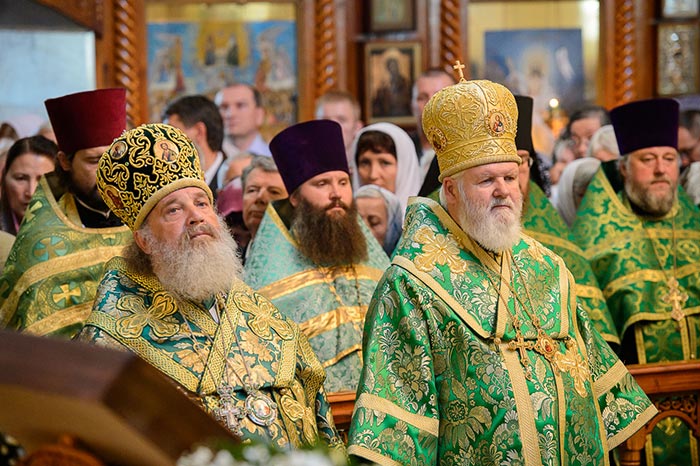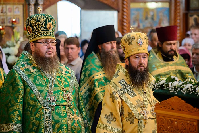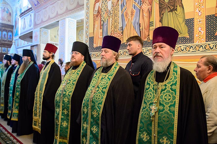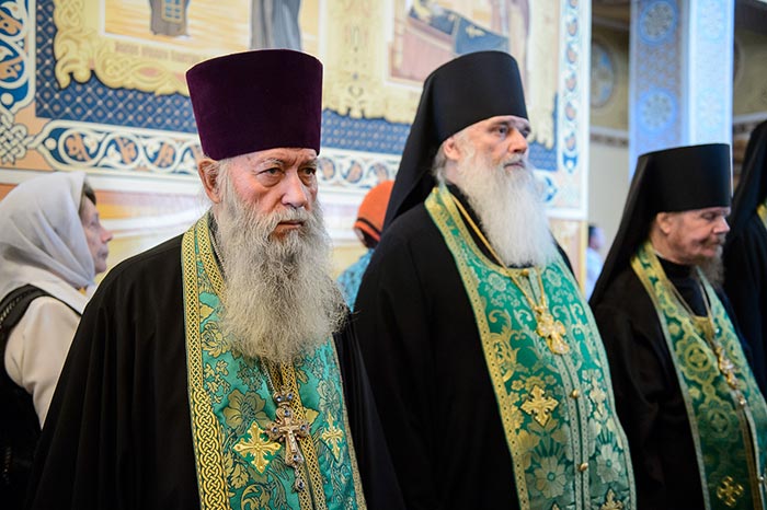 Главе Православной Церкви Казахстана сослужили: Глава Среднеазиатского Митрополичьего округа митрополит Ташкентский и Узбекистанский Викентий, Патриарший экзарх всея Беларуси митрополит Минский и Заславский Павел, митрополит Черновицкий и Буковинский Мелетий (Украинская Православная Церковь), архиепископ Чимкентский и Таразский Елевферий, викарий Астанайской епархии епископ Талдыкорганский Нектарий, Управляющий делами Православной Церкви Казахстана епископ Каскеленский Геннадий, епископ Павлодарский и Экибастузский Варнава, епископ Карагандинский и Шахтинский Севастиан, епископ Усть-Каменогорский и Семипалатинский Амфилохий, епископ Кокшетауский и Акмолинский Серапион, епископ Петропавловский и Булаевский Владимир; благочинный храмов Алма-Аты протоиерей Валерий Захаров; духовник Богородице-Рождественского монастыря архимандрит Петр (Горошко) и настоятель Введенского кафедрального собора протоиерей Александр Киселев – духовные чада и ученики преподобного старца Севастиана; духовник Алма-Атинской епархии архимандрит Иоанн (Сазонов), руководители отделов и комиссий Митрополичьего округа, священнослужители казахстанских епархий, прибывшие на торжества.
