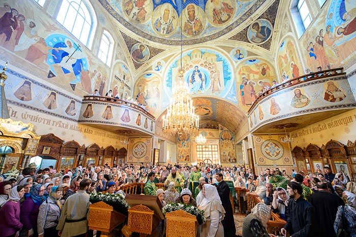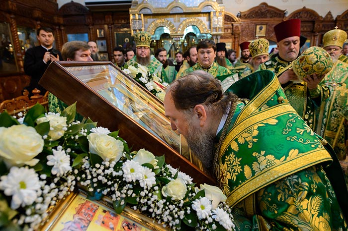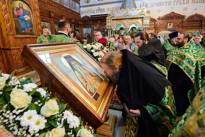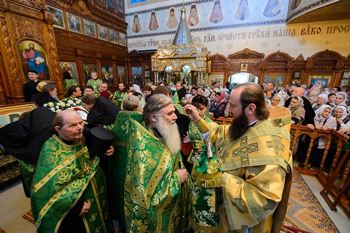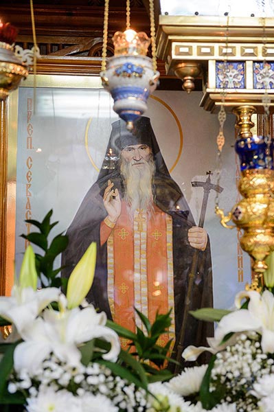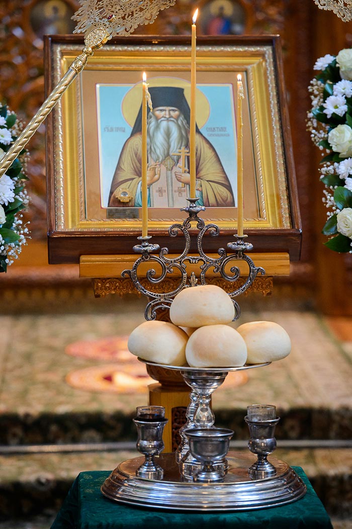 В завершение богослужения перед честными мощами преподобного Севастиана состоялось славление богоносному старцу.