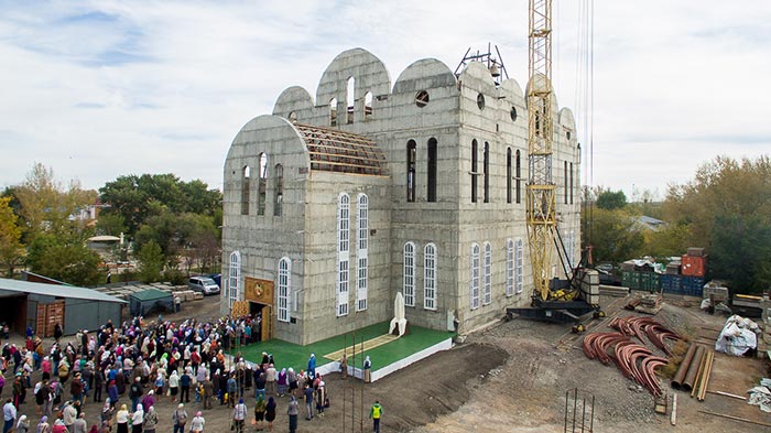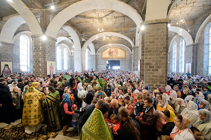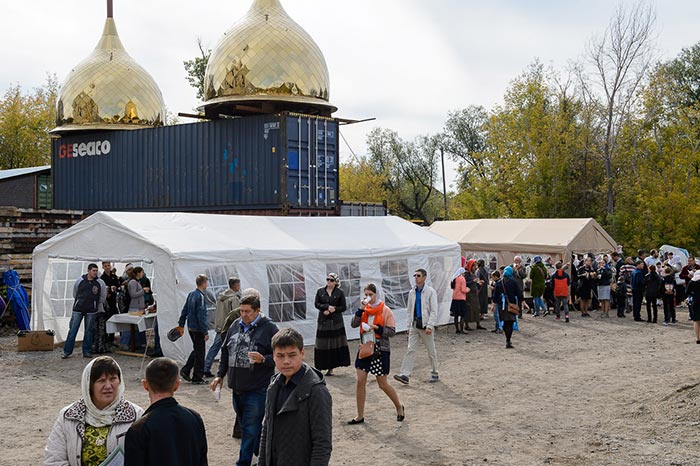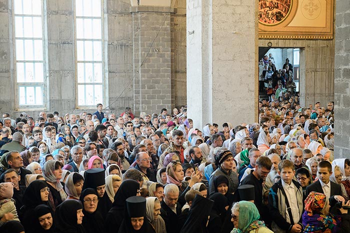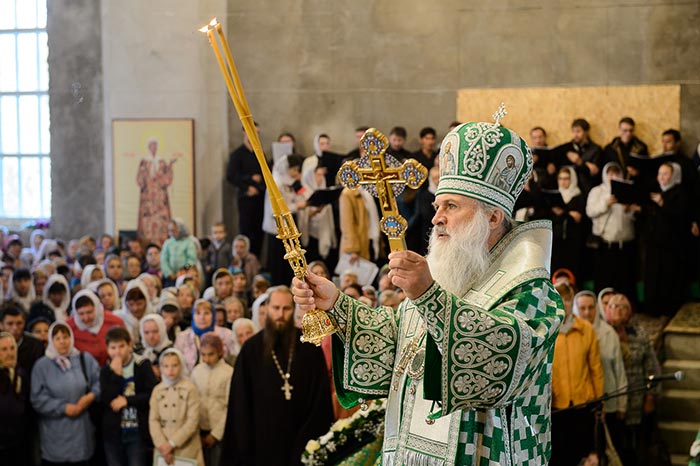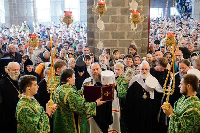 Совершение Божественной Литургии предварил крестный ход из Богородице-Рождественского монастыря в микрорайоне Михайловка в строящийся собор.