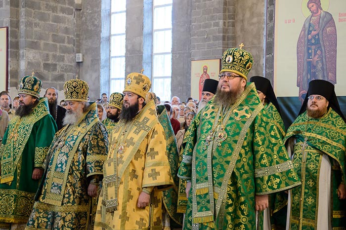 Главе Митрополичьего округа Русской Православной Церкви в Республике Казахстан сослужили: Глава Среднеазиатского Митрополичьего округа митрополит Ташкентский и Узбекистанский Викентий, Патриарший экзарх всея Беларуси митрополит Минский и Заславский Павел, митрополит Черновицкий и Буковинский Мелетий (Украинская Православная Церковь), архиепископ Чимкентский и Таразский Елевферий, викарий Астанайской епархии епископ Талдыкорганский Нектарий, Управляющий делами Православной Церкви Казахстана епископ Каскеленский Геннадий, епископ Павлодарский и Экибастузский Варнава, епископ Карагандинский и Шахтинский Севастиан, епископ Усть-Каменогорский и Семипалатинский Амфилохий, епископ Кокшетауский и Акмолинский Серапион, епископ Петропавловский и Булаевский Владимир; благочинный храмов Алма-Аты протоиерей Валерий Захаров; благочинный приходов Астаны архимандрит Сергий (Карамышев), духовник Богородице-Рождественского монастыря архимандрит Петр (Горошко) и настоятель Введенского кафедрального собора протоиерей Александр Киселев – духовные чада и ученики преподобного старца Севастиана; духовник Алма-Атинской епархии архимандрит Иоанн (Сазонов), руководитель церковно-исторического центра Вятской епархии, заведующий Вятским епархиальным архивом протоиерей Андрей Дудин, руководители отделов и комиссий Митрополичьего округа, священнослужители казахстанских епархий, прибывшие на торжества.