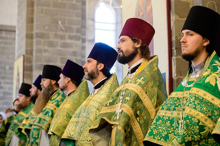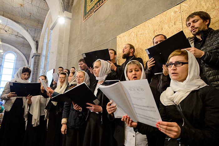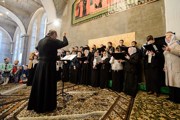 Богослужебные песнопения исполняли: хор Карагандинской епархии под управлением Владимира Тесленко, сводный хор духовенства Митрополичьего округа под управлением иеродиакона Игоря (Доброзорова) и хор Богородице-Рождественского монастыря под управлением Анны Хваницкой.