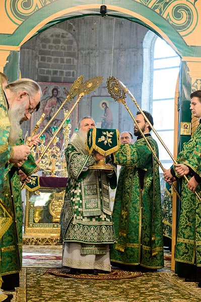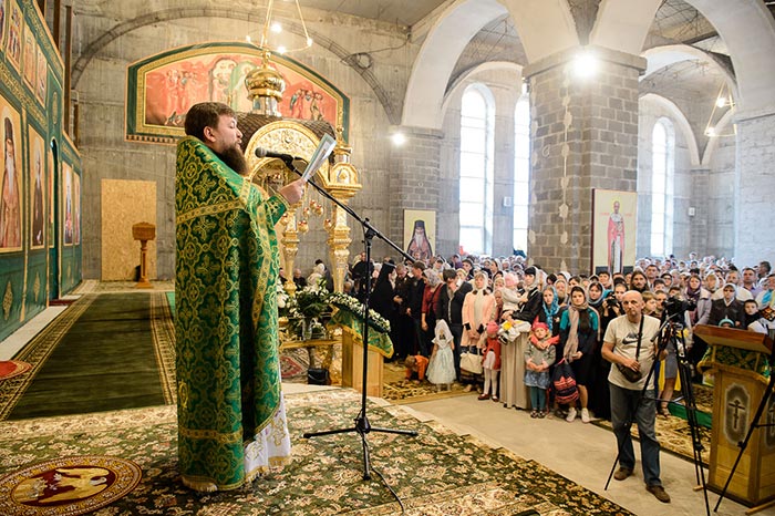 По запричастном стихе было оглашено Обращение Главы Казахстанского Митрополичьего округа митрополита Астанайского и Казахстанского Александра по случаю 50-летия преставления преподобного Севастиана Карагандинского.