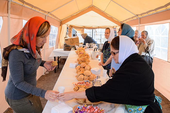 Паломникам были розданы иконы преподобного Севастиана Карагандинского с текстом Обращения митрополита Александра по случаю 50-летия преставления богоносного старца.