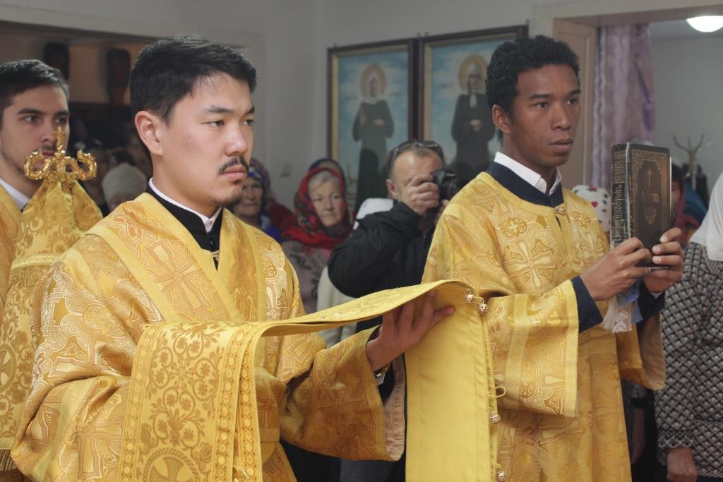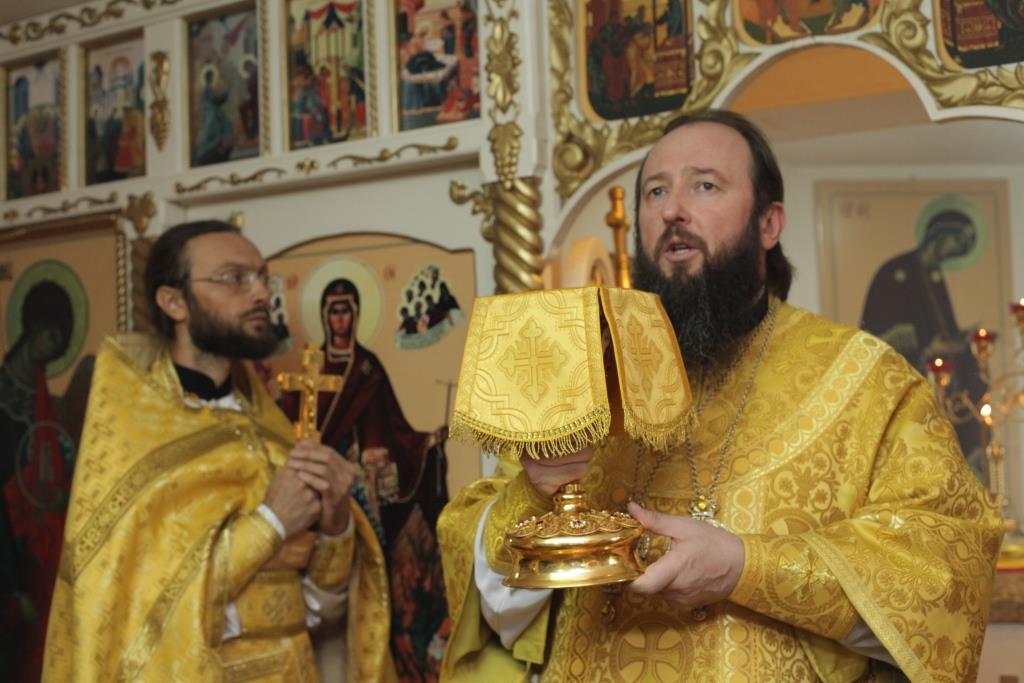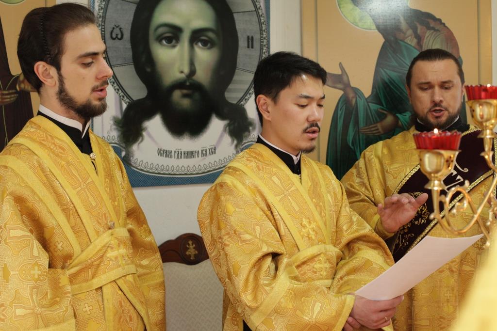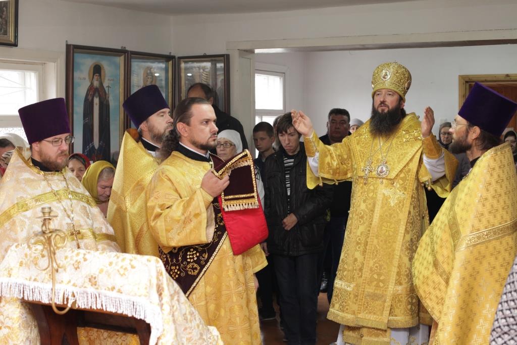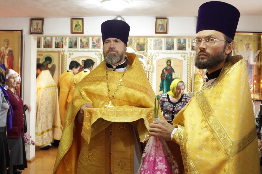 Его Преосвященству сослужили: благочинный Усть-Каменогорского церковного округа иерей Алексий Анищенко, настоятель храма в честь Казанской иконы Божией Матери посёлка Усть-Таловка протоиерей Роман Сычук, настоятель Трёхсвятительского храма посёлка Глубокое иерей Константин Акентьев, протодиакон Андрей Дудник.