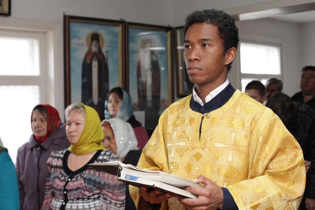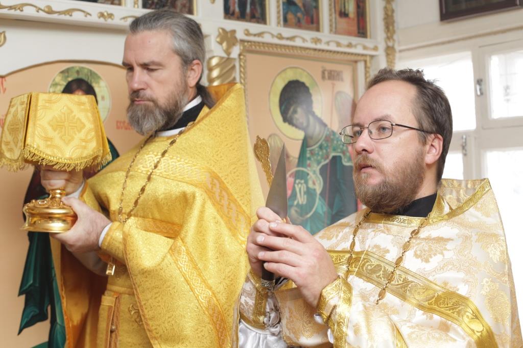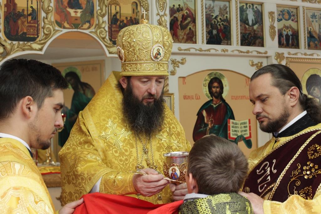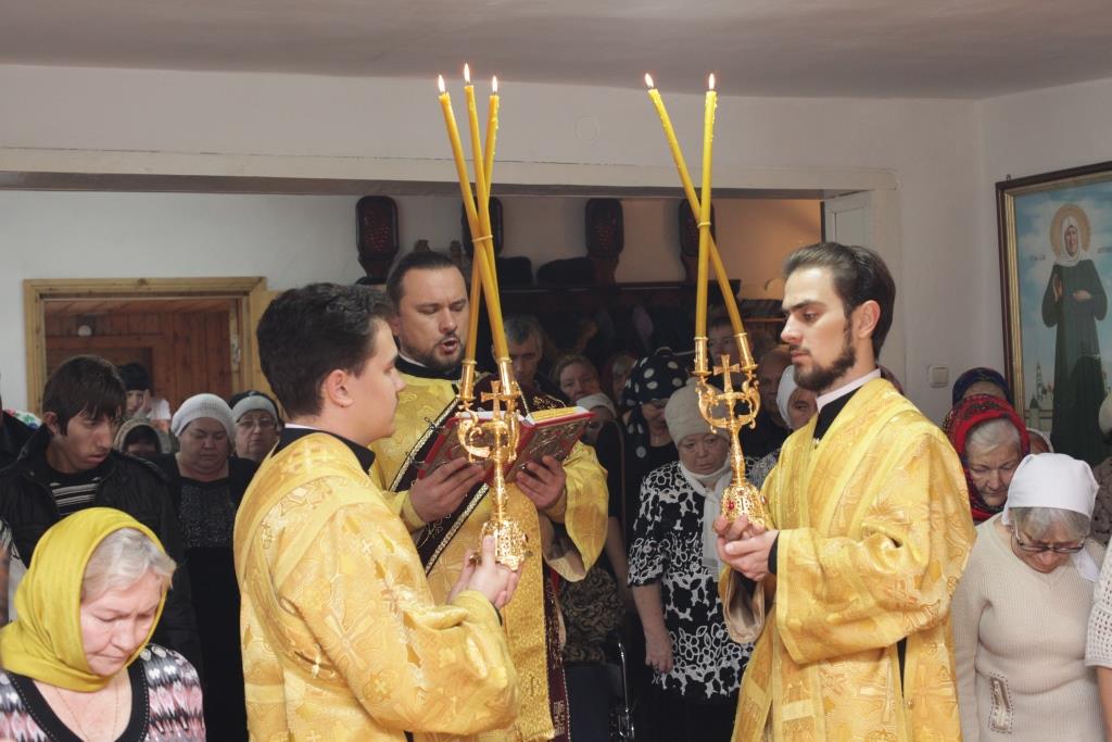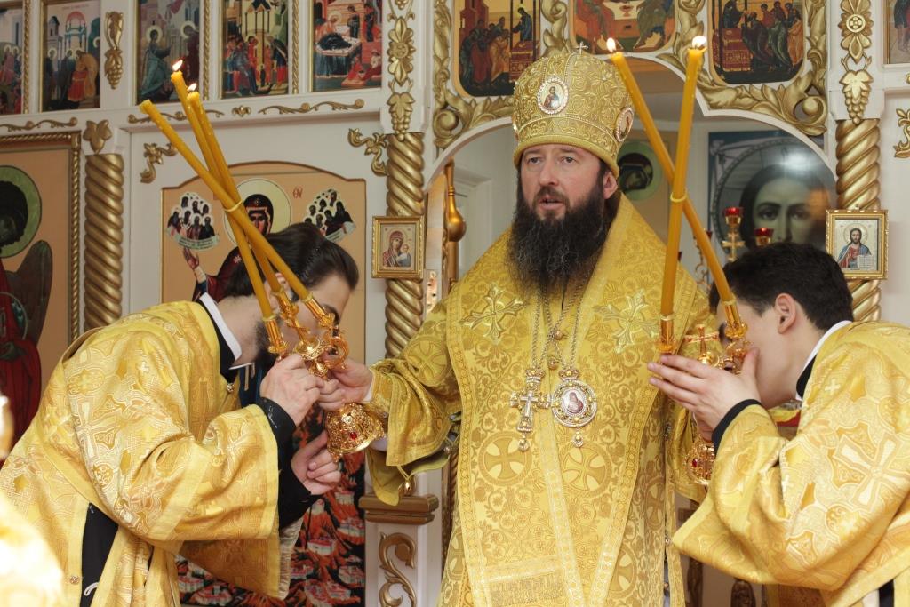 Его Преосвященству сослужили: благочинный Усть-Каменогорского церковного округа иерей Алексий Анищенко, настоятель храма в честь Казанской иконы Божией Матери посёлка Усть-Таловка протоиерей Роман Сычук, настоятель Трёхсвятительского храма посёлка Глубокое иерей Константин Акентьев, протодиакон Андрей Дудник.