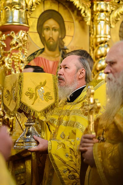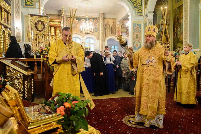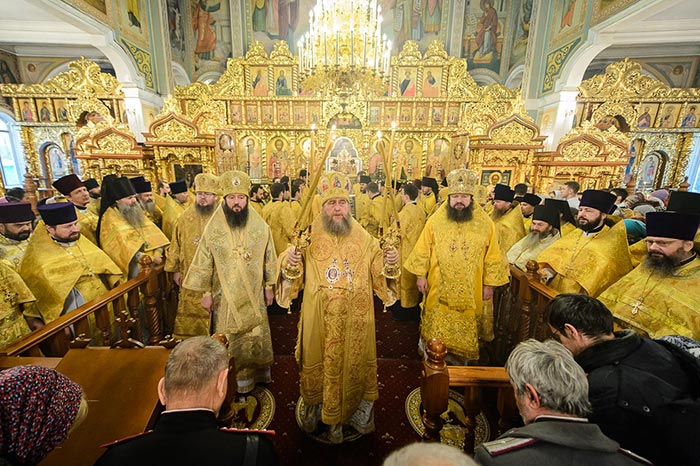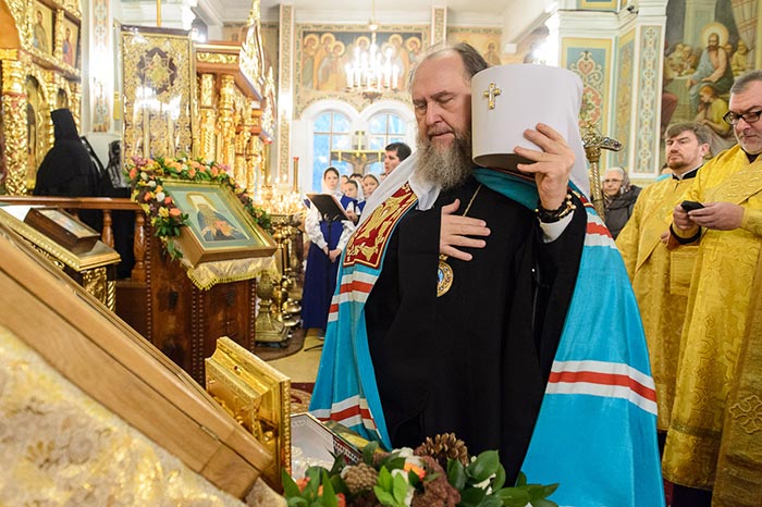 По запричастном стихе было оглашено Обращение Главы Казахстанского Митрополичьего округа митрополита Астанайского и Казахстанского Александра по случаю 50-летия преставления преподобного Севастиана Карагандинского.