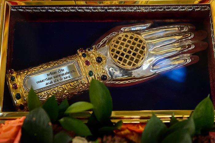 Для молитвенного поклонения верующих из Караганды к богослужению в Никольском соборе был доставлен ковчег с частью мощей преподобного старца Севастиана.
