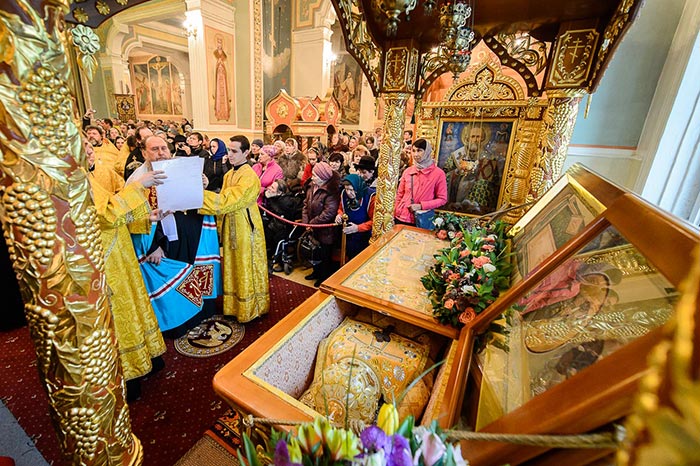 За Литургией возносились сугубые молитвы о приснопамятных родителях преподобного Севастиана Карагандинского – рабах Божиих Василии и Матроне, его братьях – монахе Рафаиле и иноке Илларионе; о православных христианах «в годину лютых гонений от безбожников умученных и убиенных, от голода, холода, ран, болезней и непосильных работ скончавшихся».