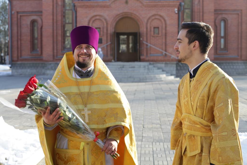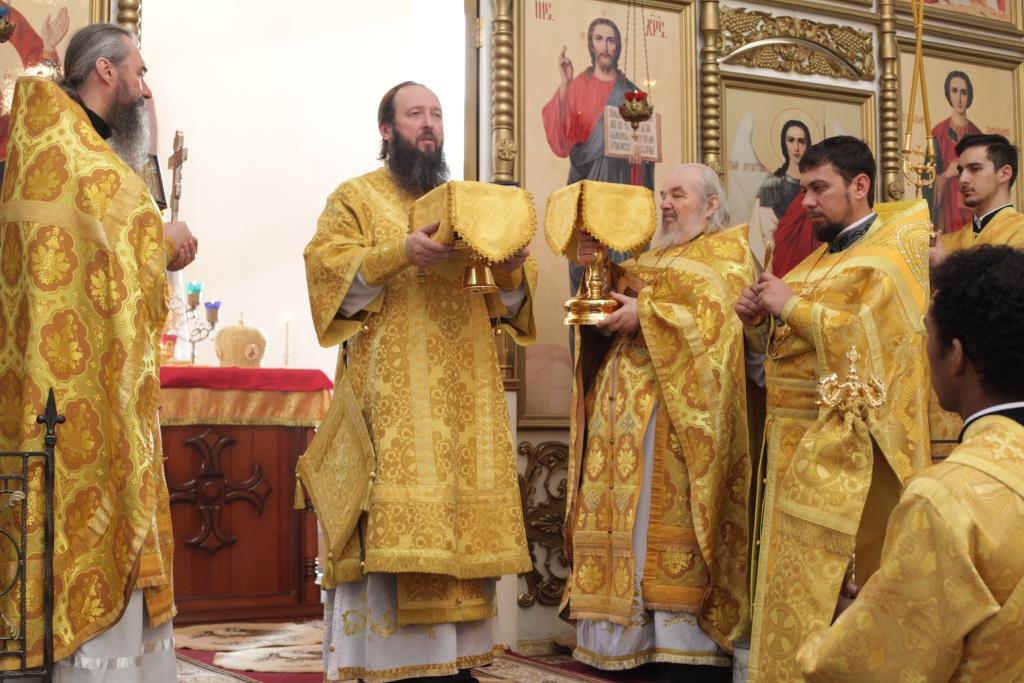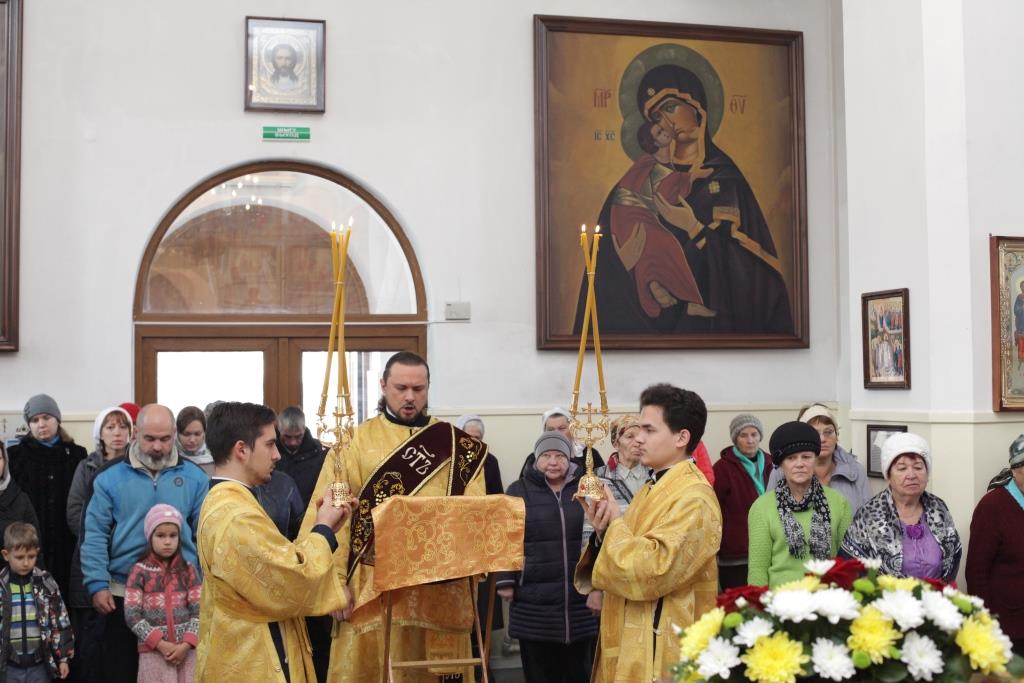 За воскресным богослужением молились прихожане храма, преподаватели и воспитанники приходской воскресной школы, участники молодежного движения епархии, паломники с городских храмов и окрестных населённых пунктов.