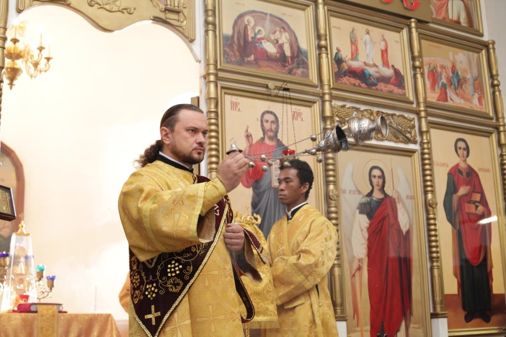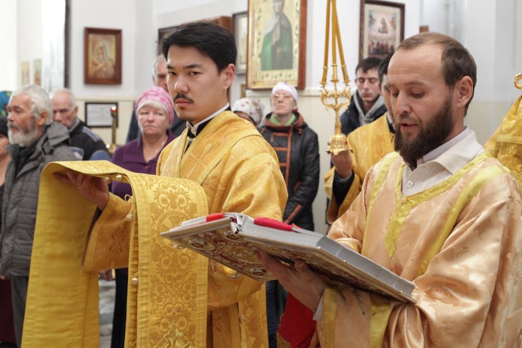 Песнопения Божественной Литургии исполнял академический хор Свято-Покровского храма Усть-Каменогорска под управлением регента О. Афанасьевой.