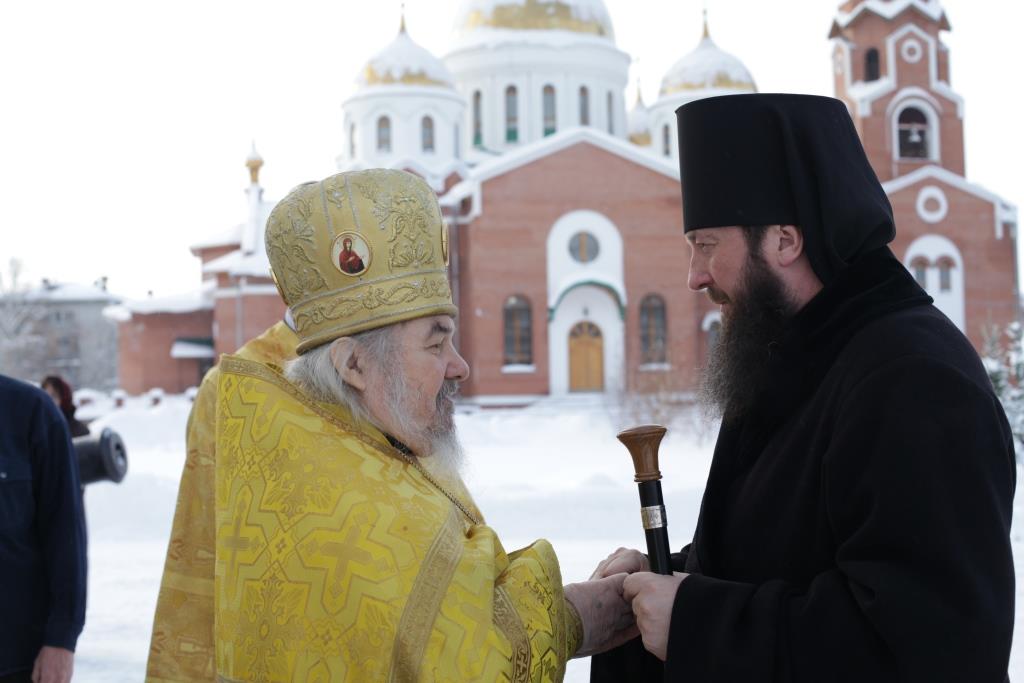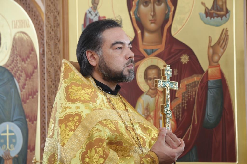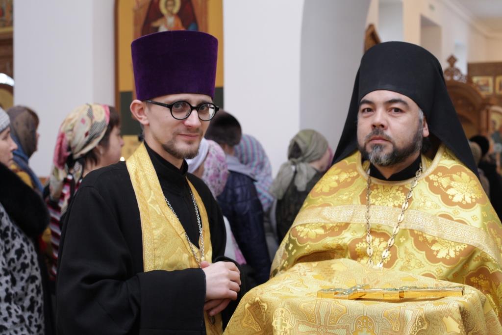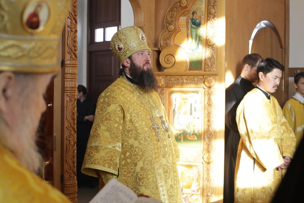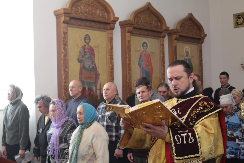 Его Преосвященству сослужили: духовник епархии архимандрит Спиридон (Теплухин), клирик собора иеромонах Севастиан (Андрющенко), протодиаконы Георгий Засыпкин и Андрей Дудник.