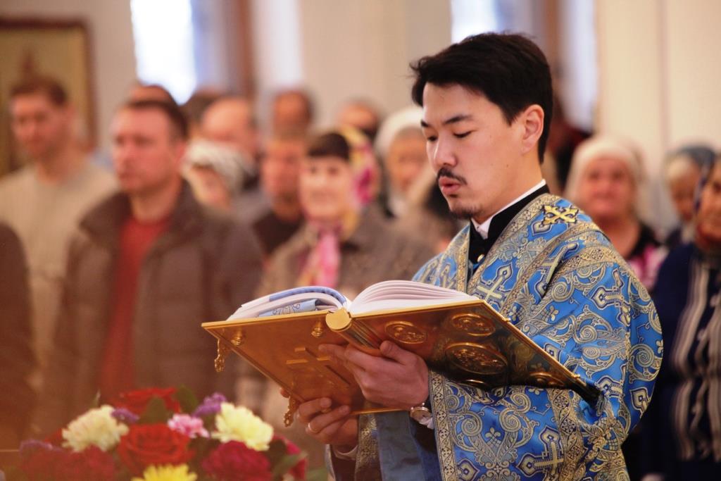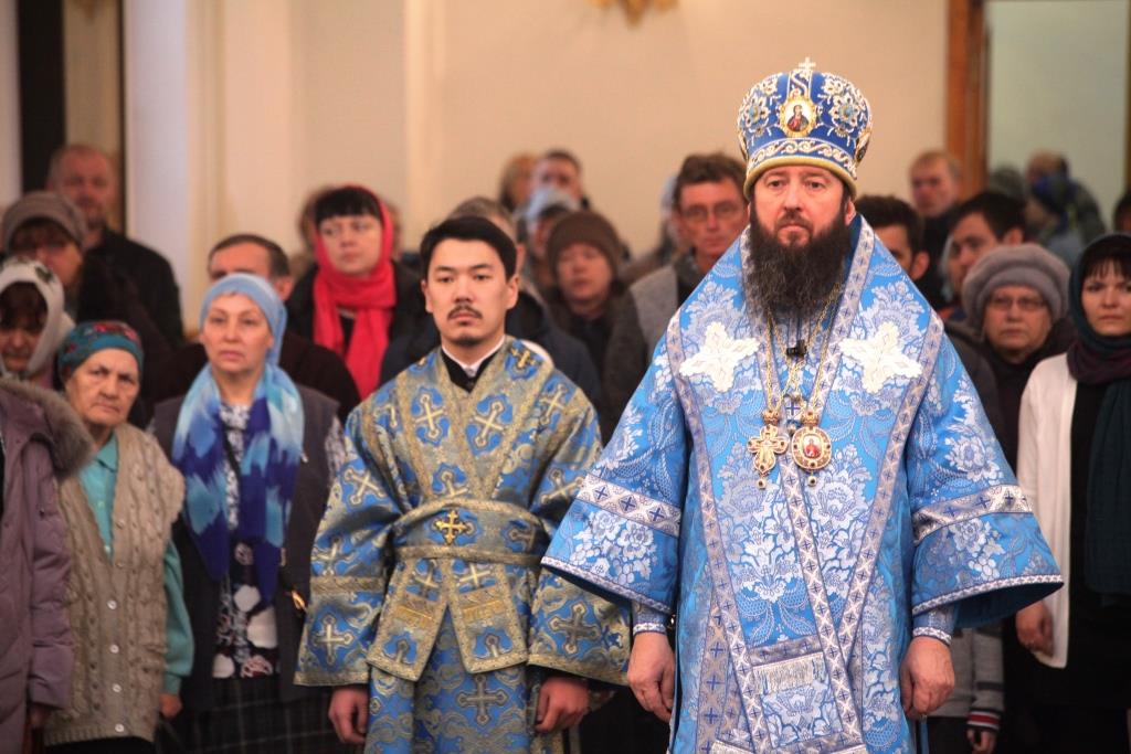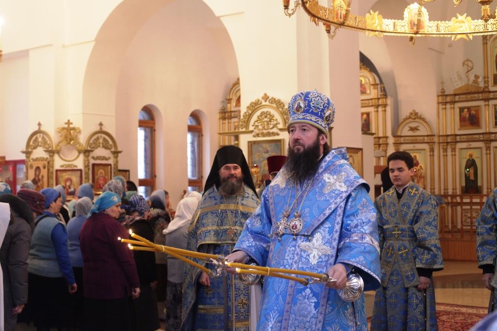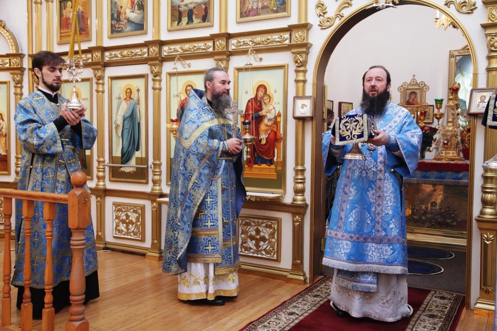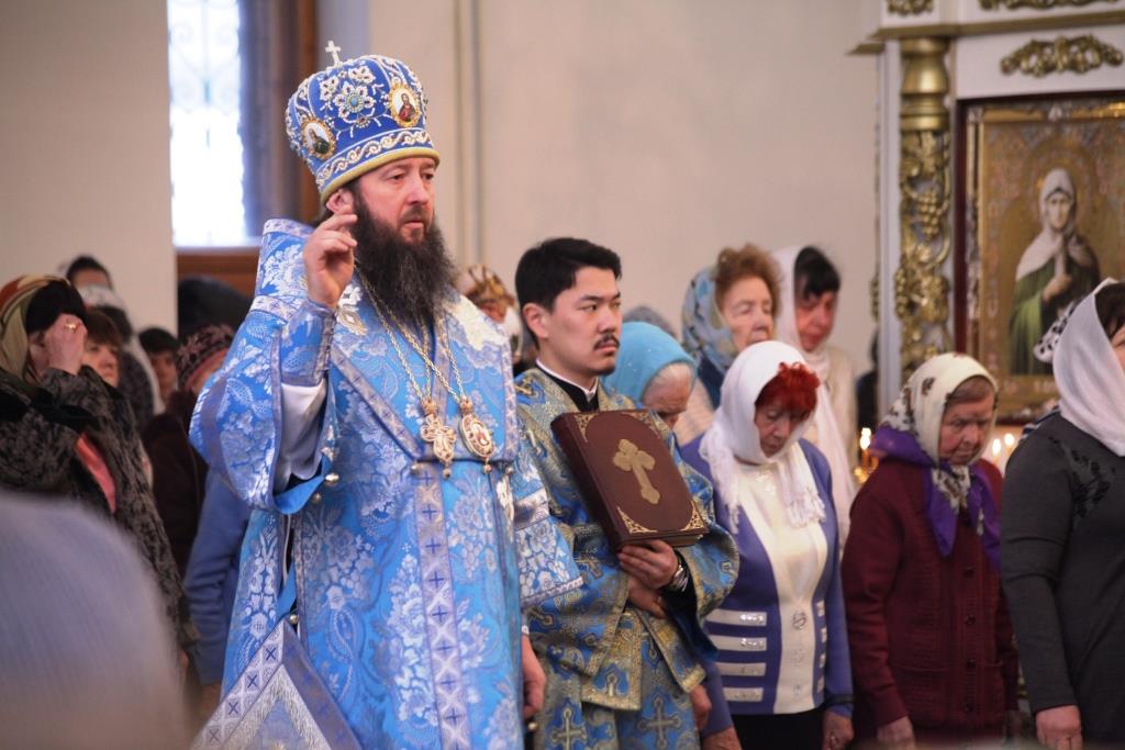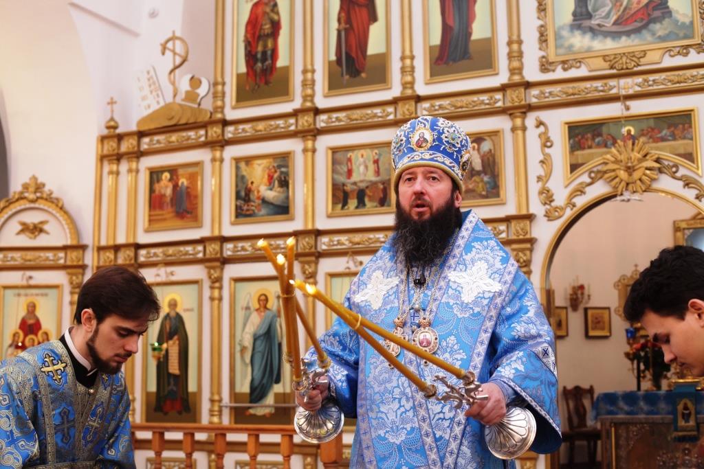 В праздничный день епископ Усть-Каменогорский и Семипалатинский Амфилохий возглавил служение Божественной Литургии святителя Иоанна Златоуста в Свято-Андреевском кафедральном соборе столицы Рудного Алтая. Архипастырю сослужили: духовник епархии архимандрит Спиридон (Теплухин), ключарь кафедрального собора иеромонах Никодим (Авдеев), клирик храма иерей Константин Дьяков, протодиакон Андрей Дудник.
