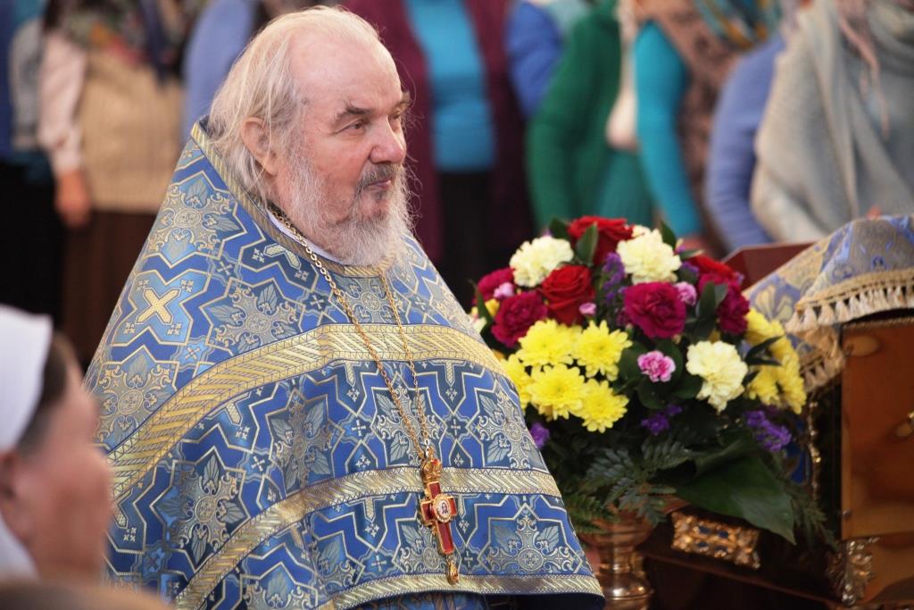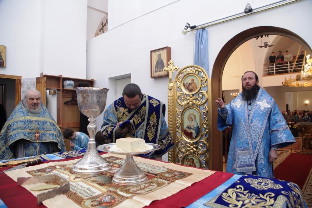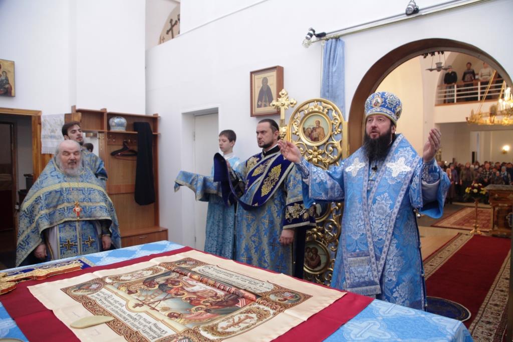 В завершение Богослужения Архипастырь и духовенство совершили славление Пресвятой Богородицы перед праздничной иконой.