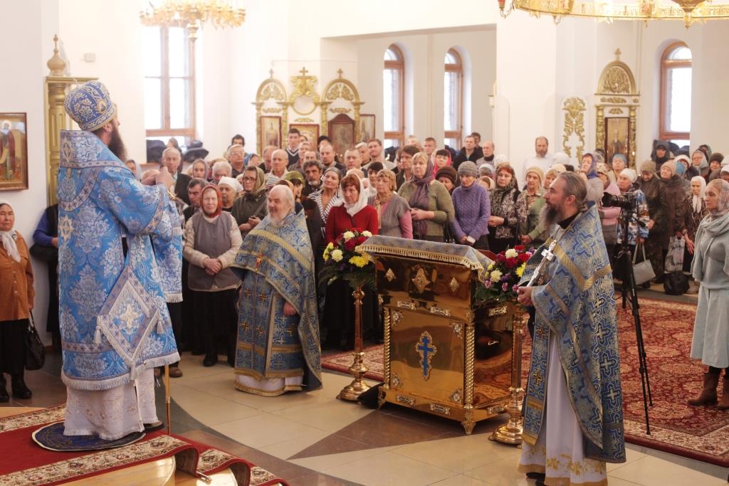 В завершение проповеди Преосвященнейший Архипастырь сообщил прихожанам, что 10 декабря 2016 года в Усть-Каменогорск прибывает почитаемая святыня – ковчег с частицей мощей святой блаженной Матроны Московской. Святые мощи в Усть-Каменогорск доставит Глава Митрополичьего Округа Русской Православной Церкви в Республике Казахстан Высокопреосвященнейший митрополит Александр. 11 декабря, в Неделю 25-ю по Пятидесятнице митрополит Александр в сослужении епископа Амфилохия, сонма казахстанских архипастырей и епархиального духовенства совершит в Андреевском соборе Божественную Литургию.