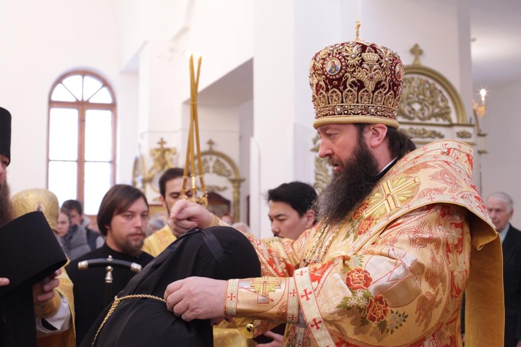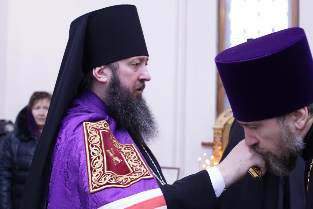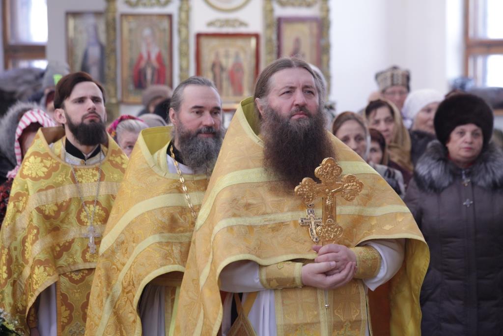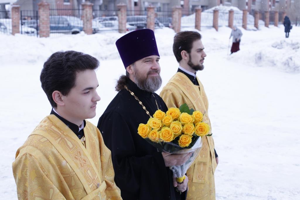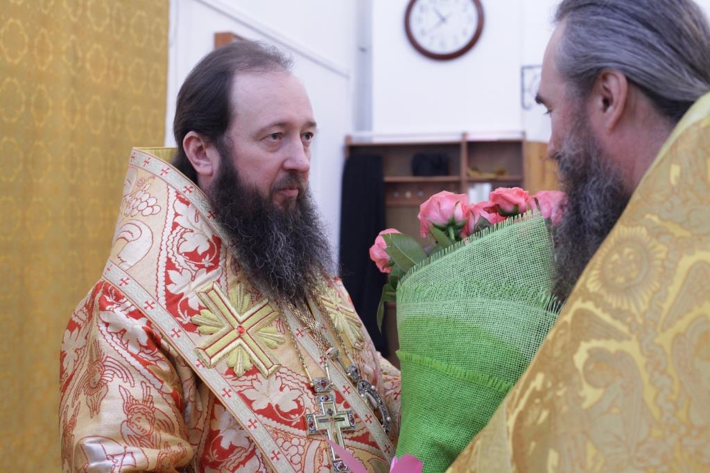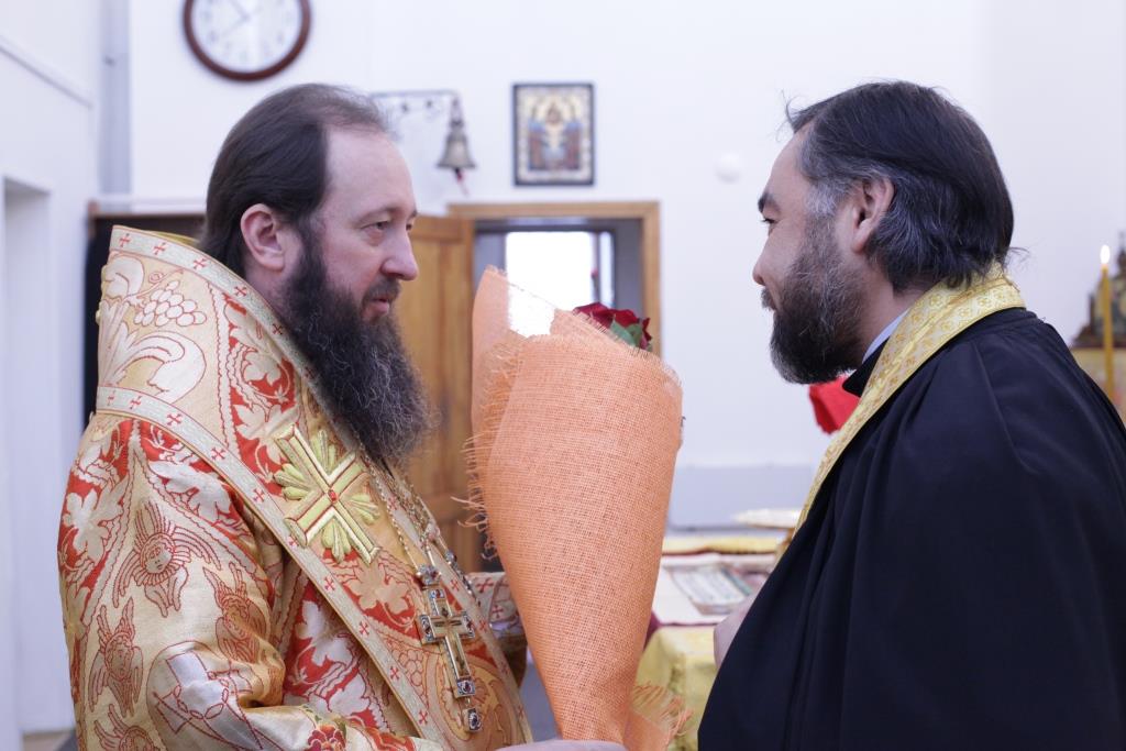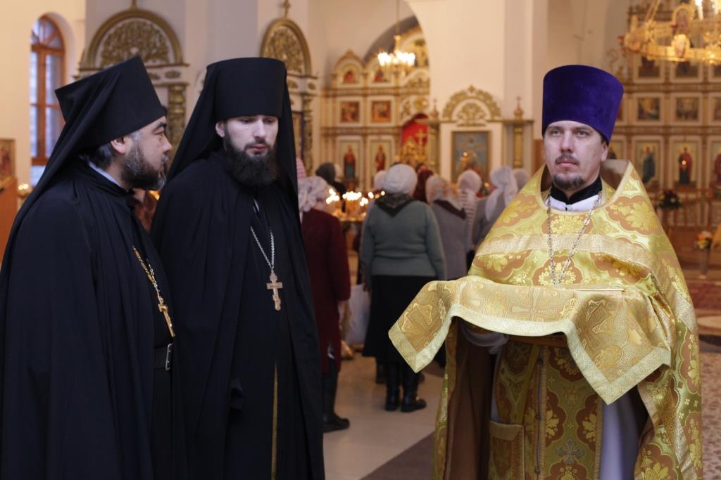 Его Преосвященству сослужили: духовник епархии архимандрит Спиридон (Теплухин), благочинный Усть-Каменогорского церковного округа иерей Алексий Анищенко, духовник Знаменско-Абалацкой Петро-Павловской женской обители города Семипалатинска игумен Аникита (Макаров), ключарь кафедрального собора иеромонах Никодим (Авдеев), настоятель Свято-Зиновьевского храма Усть-Каменогорска иерей Вячеслав Гутов, клирик кафедрального собора иерей Алексий Клепиков, заведующий канцелярией епархии иерей Константин Дьяков, клирик Семипалатинского женского монастыря иеромонах Мануил (Чабанов). Диаконский чин возглавил протодиакон Георгий Засыпкин.