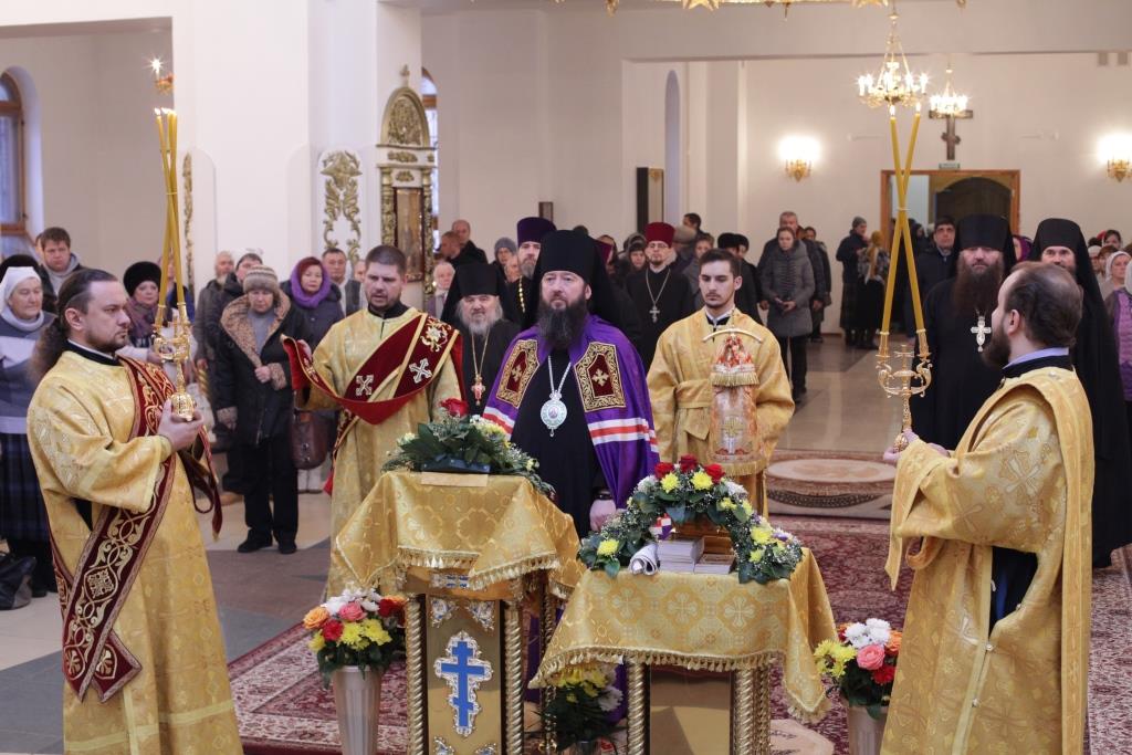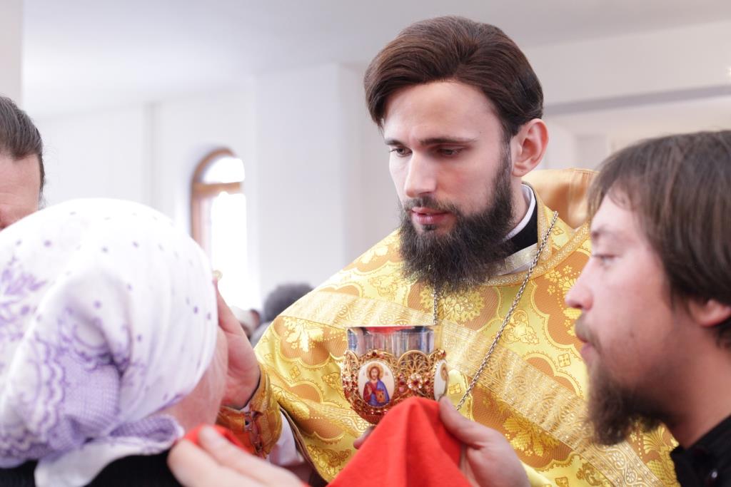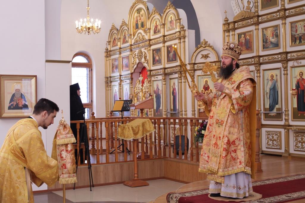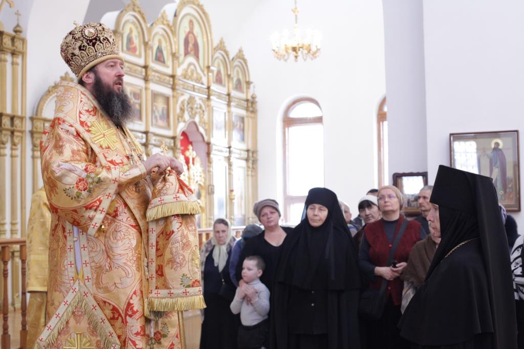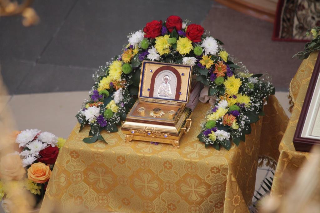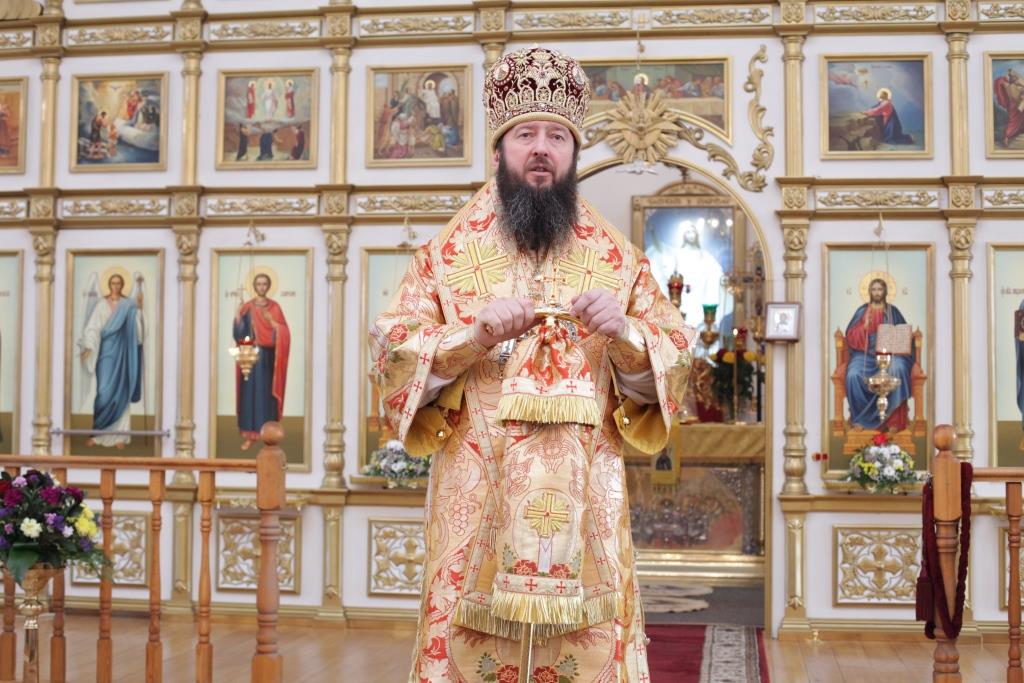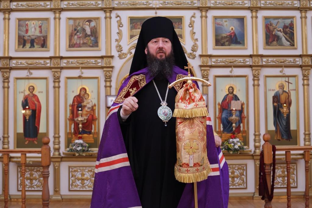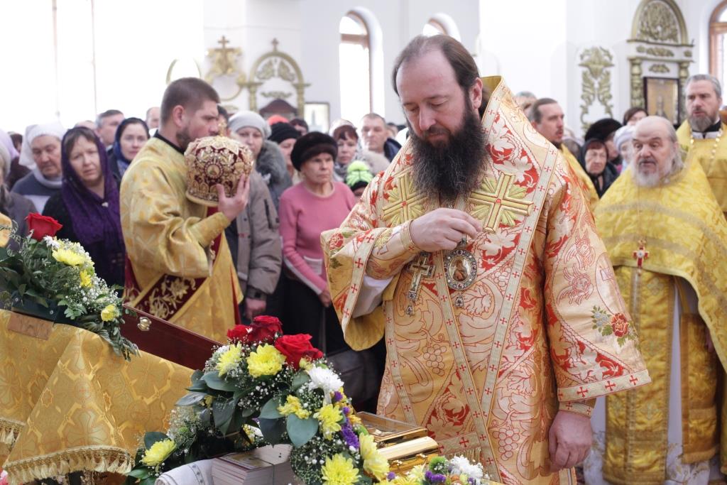 Литургия завершилась славлением перед праздничной иконой и ковчегом с мощами блаженной старицы Матроны Московской, по окончании которого Преосвященный Владыка поздравил собравшихся и обратился к верующим с архипастырским словом.
