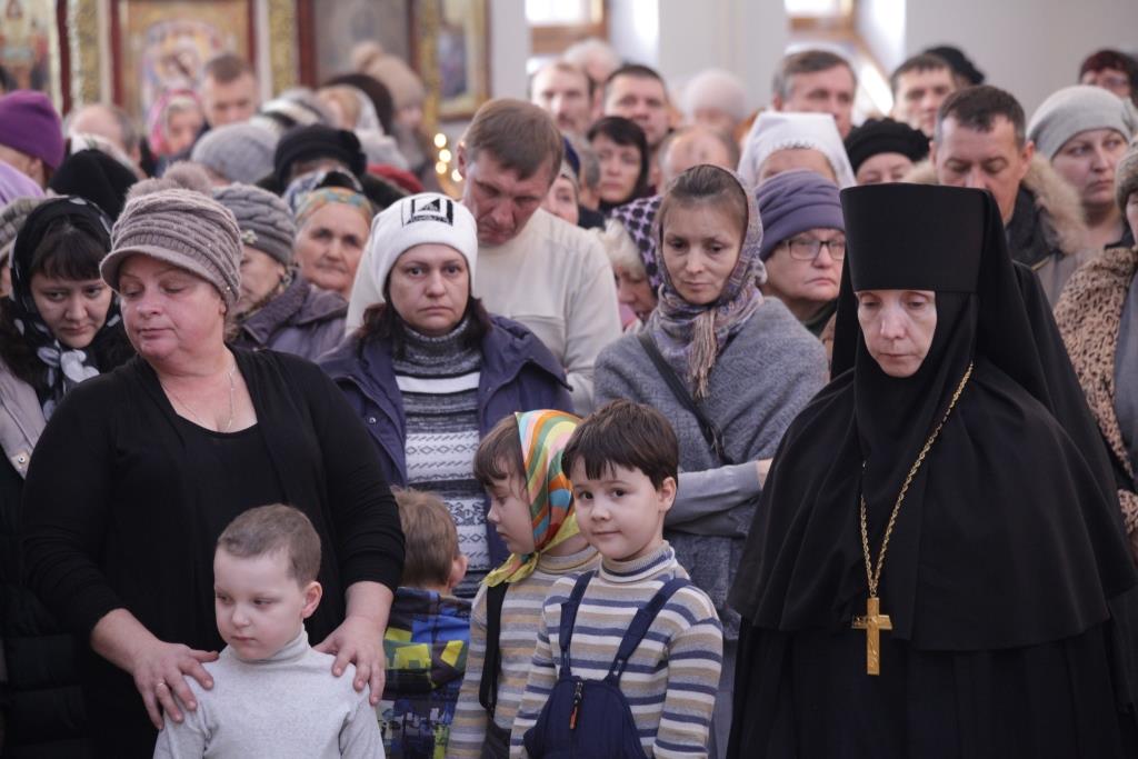 За богослужением молились насельники Свято-Троицкого мужского монастыря, сестры Знаменского женского монастыря города Семипалатинска, сотрудники епархиального управления, преподаватели и воспитанники Центральной воскресной школы, прихожане главного храма Рудного Алтая, паломники из городских храмов и окрестных населенных пунктов.