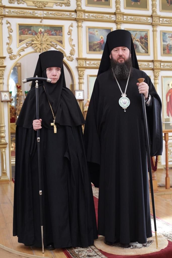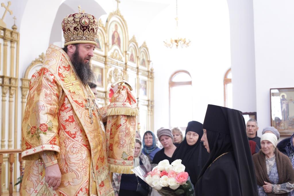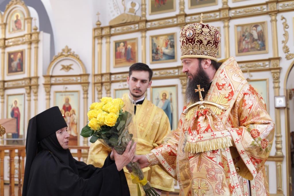 В завершение проповеди Преосвященнейший Владыка поздравил игумению Мариониллу с высоким назначением и пожелал ей крепости духовных и телесных сил и Божия благословения на новом поприще служения Господу и Его Святой Церкви. В ответном слове матушка-настоятельница женского монастыря поблагодарила Владыку за доверие и испросила его святых молитв.