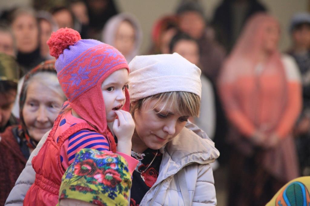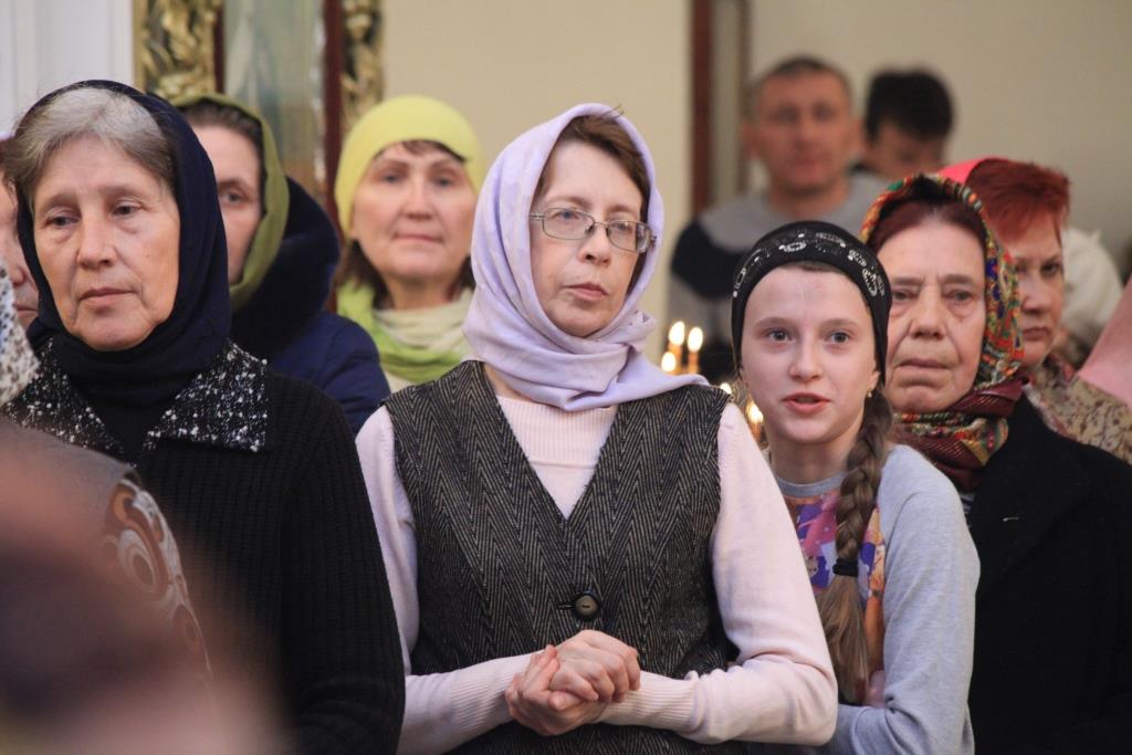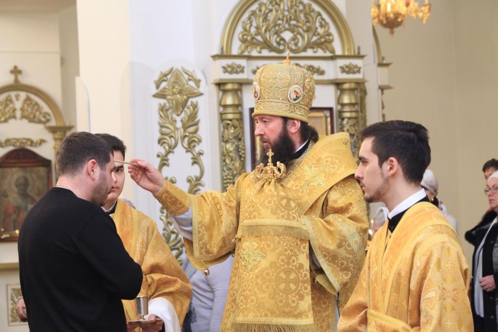 На утрене, после прочтения Евангельского зачала, Преосвященнейший Архипастырь помазал духовенство и верующих освященным елеем.