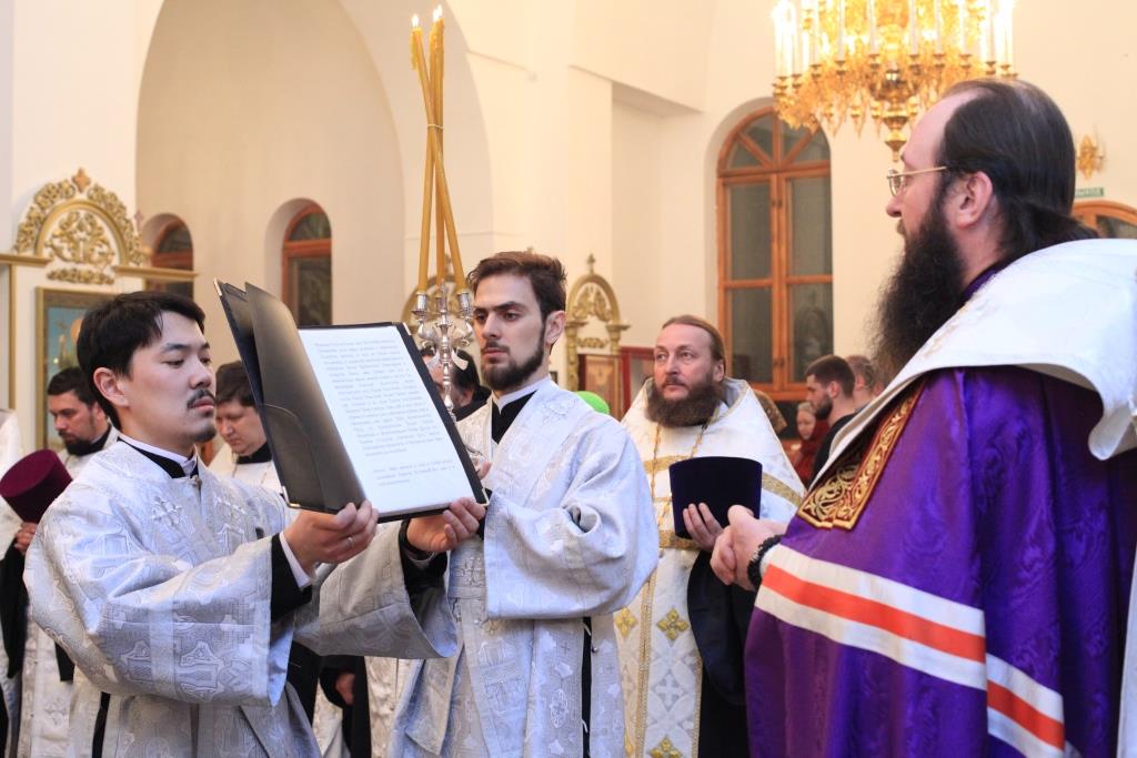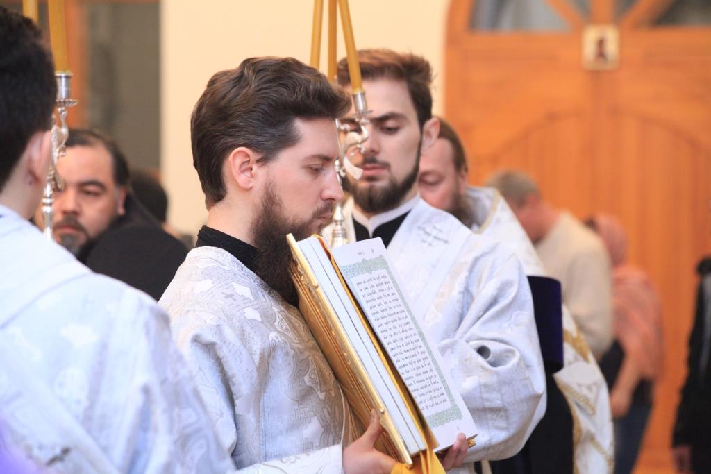 За богослужением молились насельники Свято-Троицкого мужского монастыря, преподаватели и воспитанники Центральной воскресной школы, сотрудники епархиального управления, прихожане и паломники кафедрального собора.