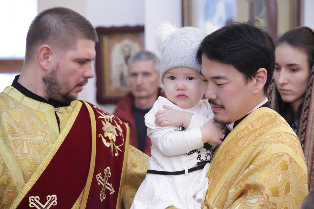 Перед причастием мирян ключарь кафедрального собора огласил Обращение Главы Казахстанского Митрополичьего Округа Высокопреосвященнейшего митрополита Астанайского и Казахстанского Александра по случаю Нового года.