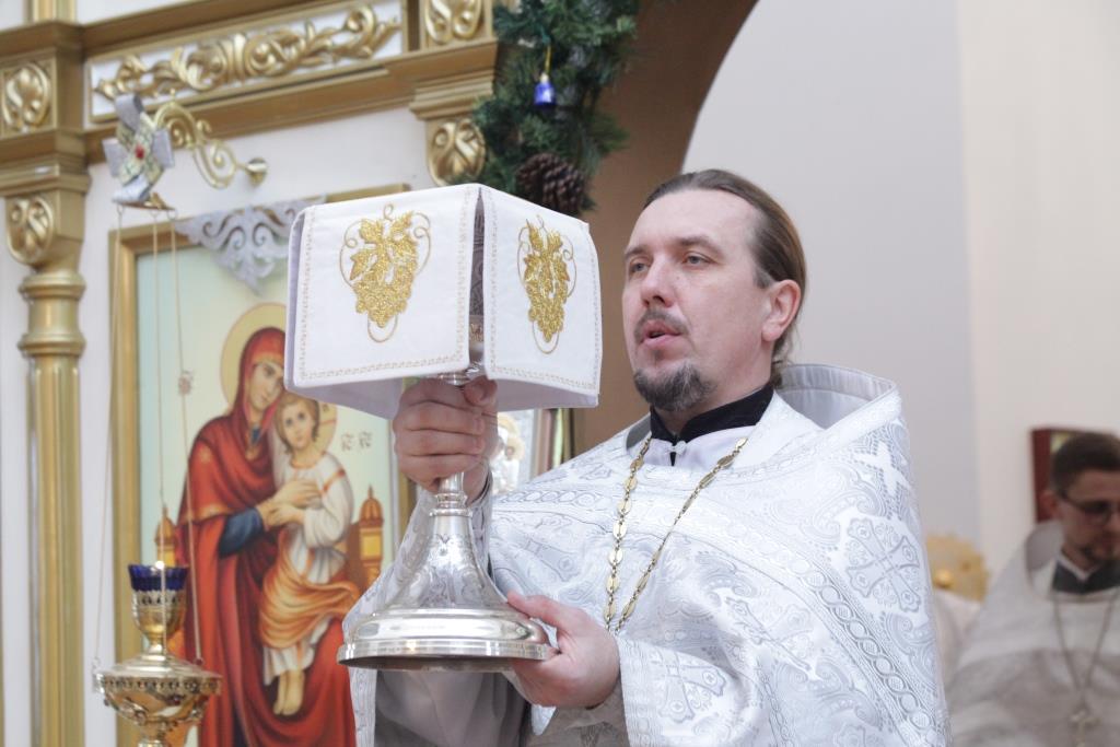 После окончания Божественной Литургии перед праздничной иконой было совершено славление Рождеству Христову.