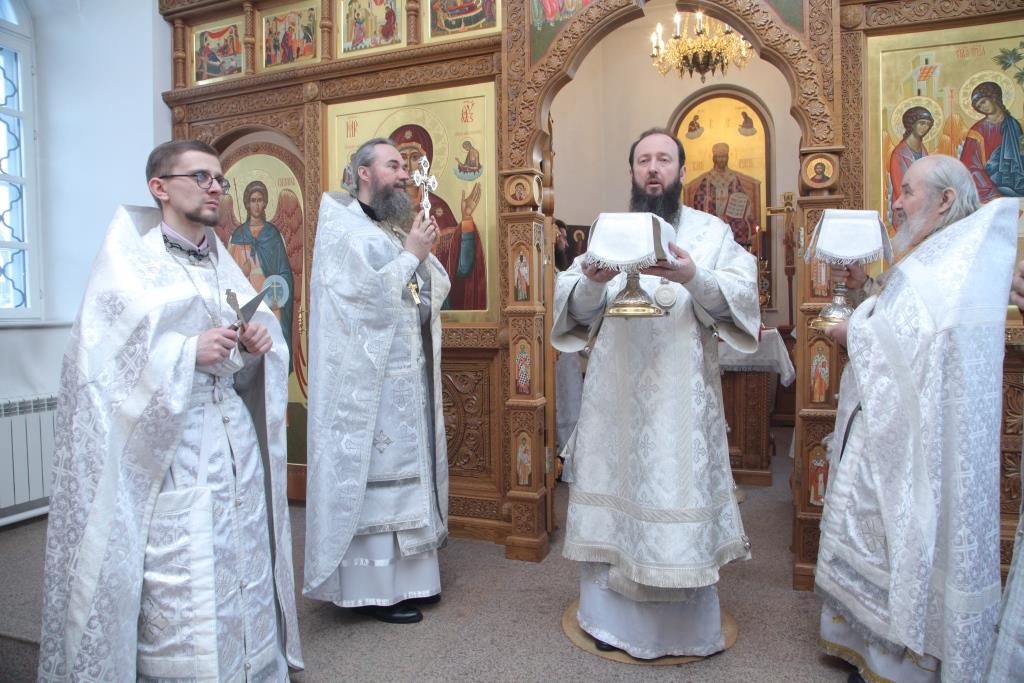 За Божественной Литургией молились насельники Свято-Троицкого мужского монастыря, сотрудники епархиального управления, прихожане городских храмов и паломники.