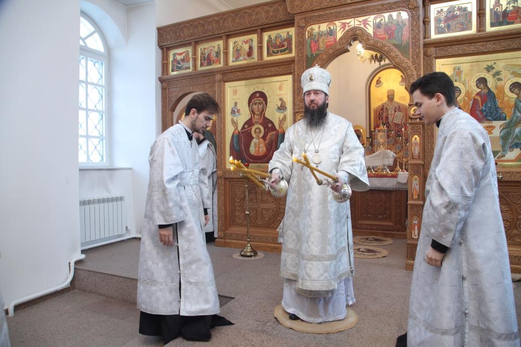 Управляющий Усть-Каменогорской и Семипалатинско епархией Преосвященнейший епископ Амфилохий возглавил служение Божественной Литургии святителя Василия Великого в Свято-Троицком монастырском соборе города Усть-Каменогорска. Архипастырю сослужили: духовник епархии архимандрит Спиридон (Теплухин), ключарь Свято-Андреевского кафедрального собора иеромонах Никодим (Авдеев), заведующий епархиальной канцелярией иерей Константин Дьяков; протодиакон Андрей Дудник, иеродиакон Мефодий (Шевчук), диакон Алексий Горбунов.