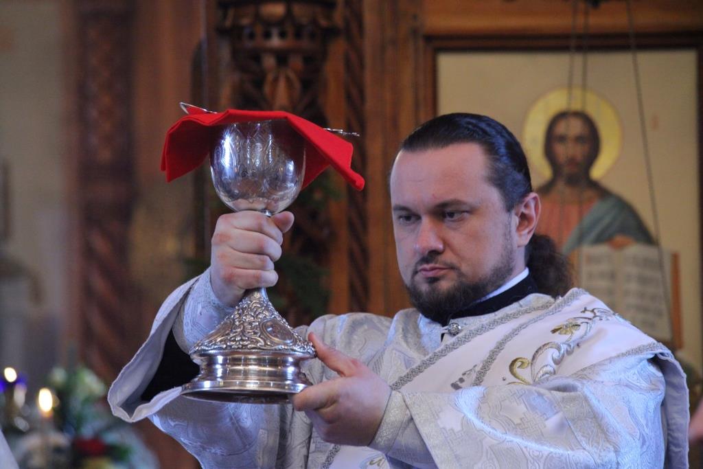 Перед причастием мирян проповедь произнес иеромонах Никодим (Авдеев).