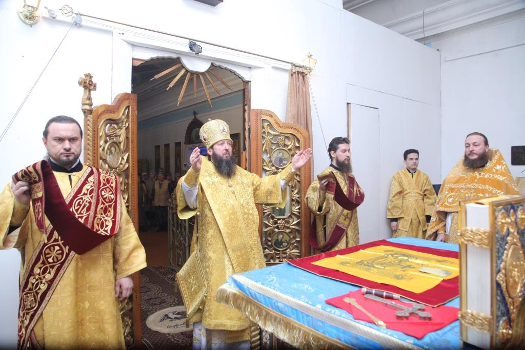 В завершение проповеди Преосвященнейший Архипастырь призвал на собравшихся Божие благословение на все доброе и полезное и пожелал прихожанам крепости духовных и телесных сил. После Богослужения настоятель храма протоиерей Евгений Яганов ознакомил Владыку епископа со строительными работами по возведению колокольни при храме.