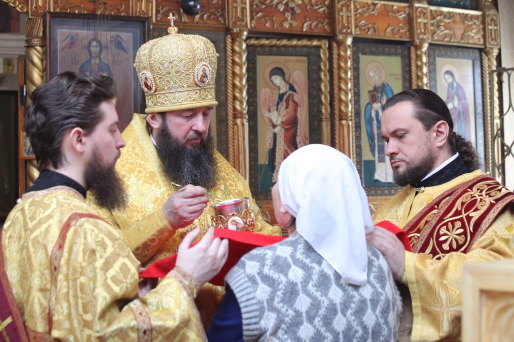 Перед причастием мирян проповедовал иеромонах Никодим (Авдеев).