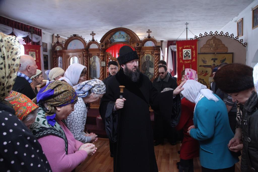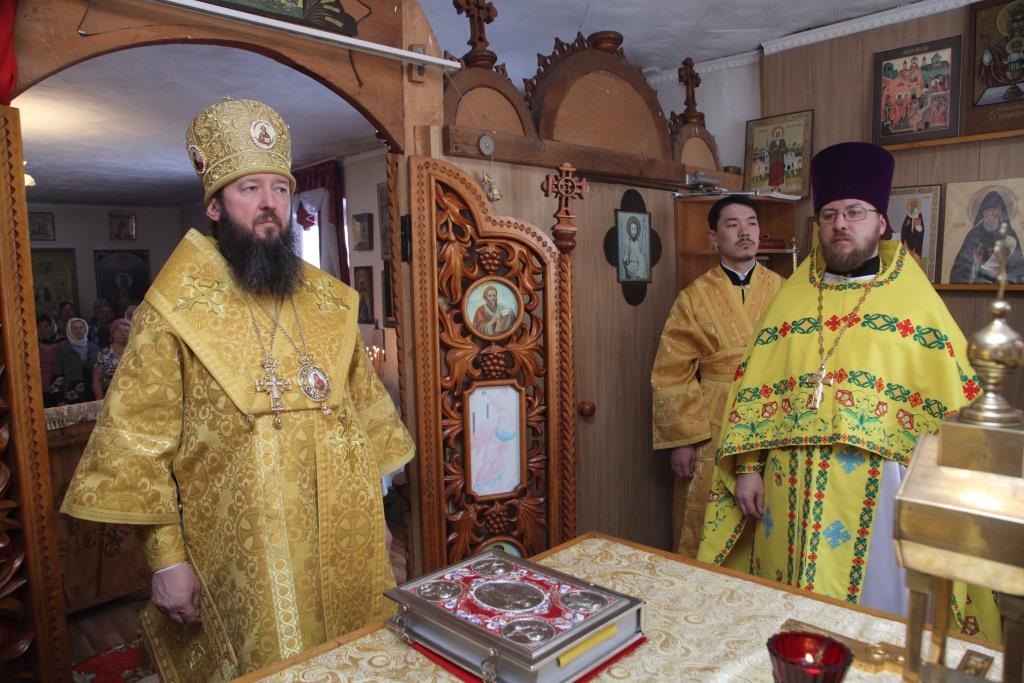 Преосвященнейший епископ Усть-Каменогорский и Семипалатинский Амфилохий посетил с Архипастырским визитом приход в честь Трех Святителей поселка Глубокое, где в день храмового праздника возглавил служение Божественной Литургии святителя Иоанна Златоуста.