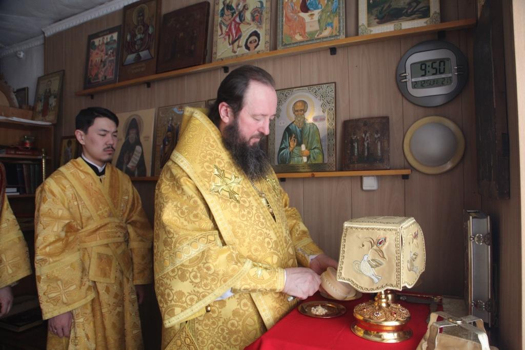 Владыке епископу сослужили: благочинный Усть-Каменогорского церковного округа иерей Алексий Анищенко, настоятель храма иерей Константин Акентьев, протодиакон Андрей Дудник, иеродиакон Мефодий (Шевчук).