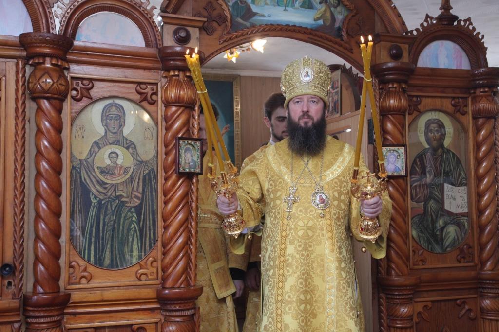 По окончании Божественной Литургии Преосвященнейший Владыка поздравил духовенство и прихожан с престольным праздником и обратился ко всем молящимся со словами проповеди.
