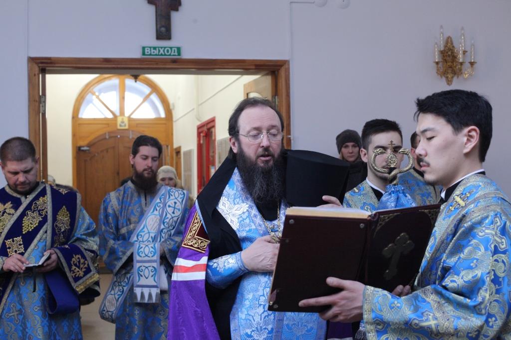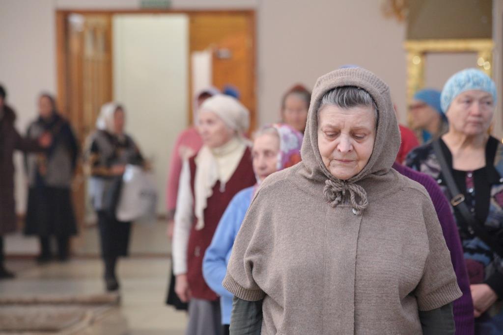 На утрене, после прочтения Евангельского зачала, повествующего о встрече праведного старца Симеона с Богомладенцем Христом в Иерусалимском храме, архипастырь помазал духовенство и верующих освященным елеем. Все собравшиеся на Богослужение получили очередной номер еженедельного миссионерского издания «Андреевский благовест», посвященный отмечаемому ныне празднику Сретения. На Богослужении присутствовала казахстанская легкоатлетка, чемпионка Олимпийских игр в Лондоне (2012), дважды бронзовый призер Олимпийских игр в Пекине (2008) и Рио-де-Жанейро (2016) О.С. Рыпакова.