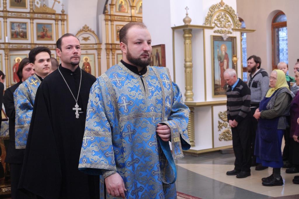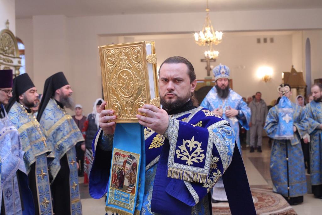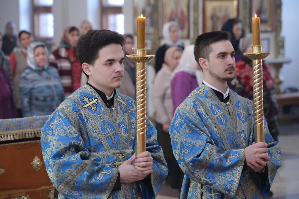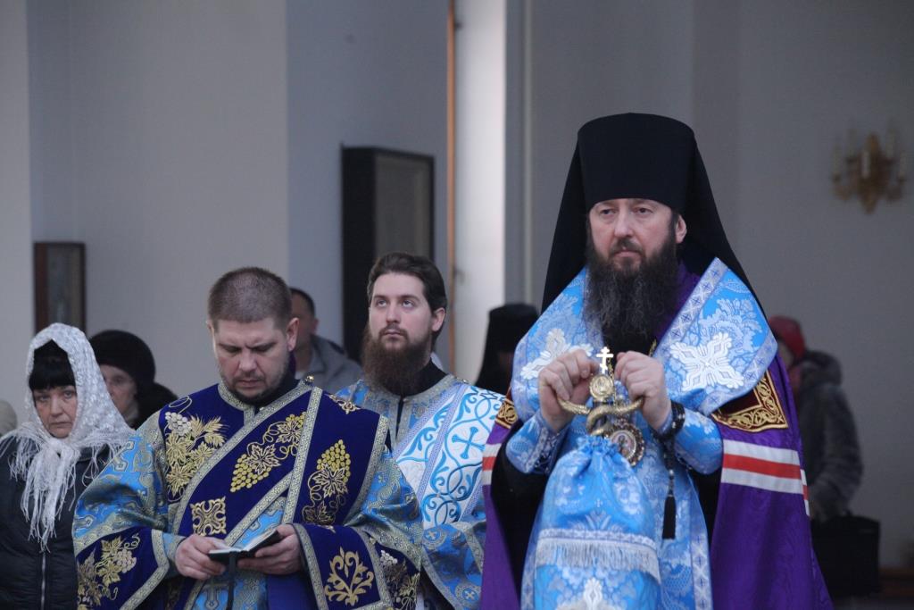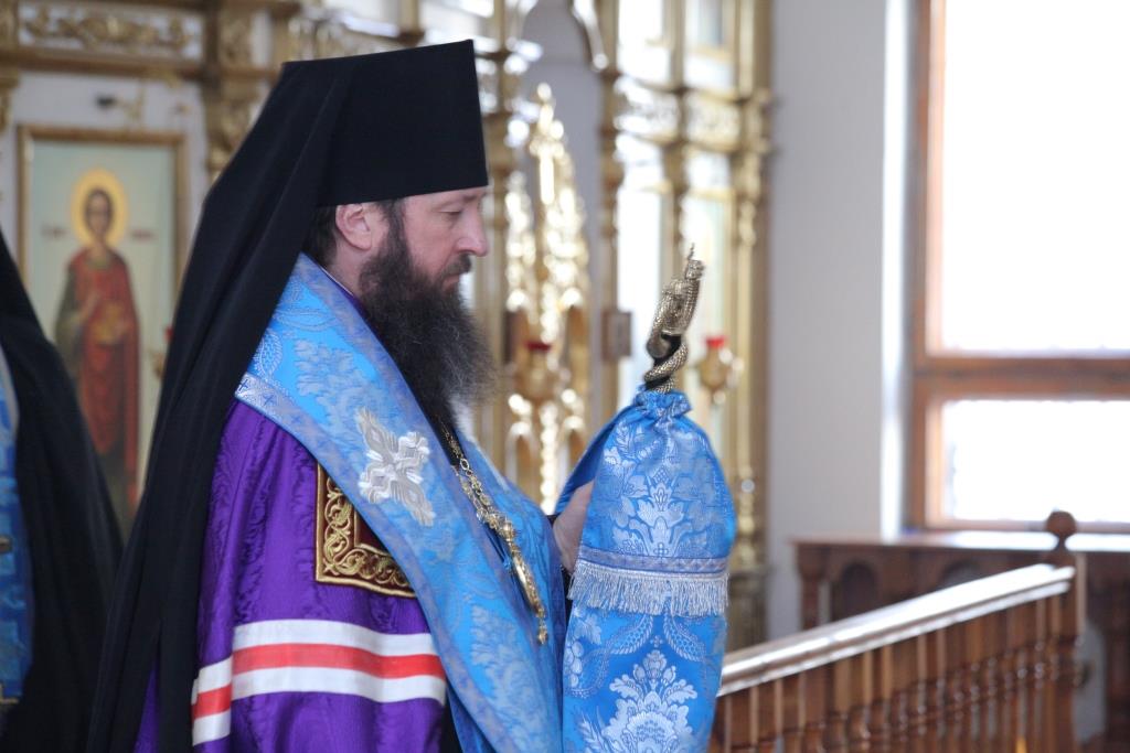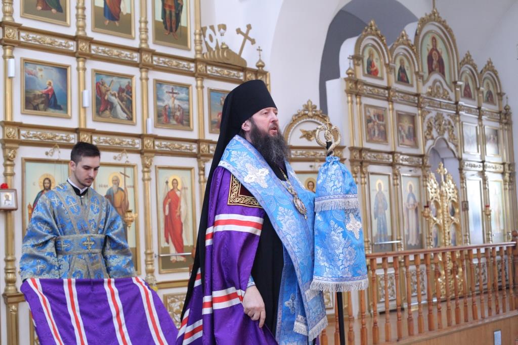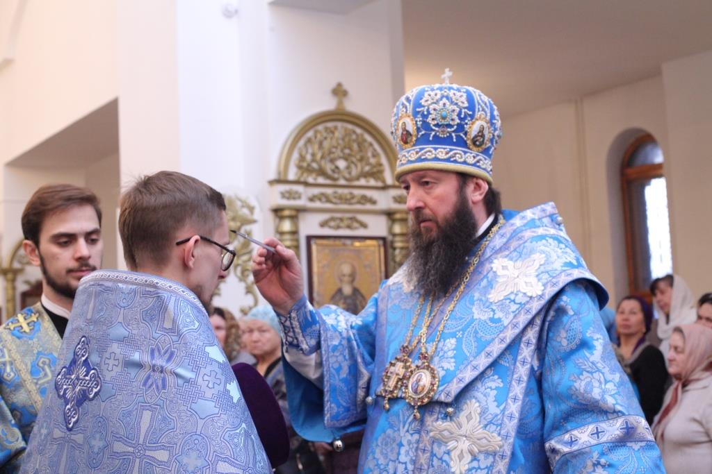 Преосвященнейшему Архипастырю сослужили: ключарь собора иеромонах Никодим (Авдеев), клирики собора иерей Алексий Клепиков, иеромонах Севастиан (Андрющенко) и иерей Константин Дьяков; протодиаконы Георгий Засыпкин и Андрей Дудник, иеродиакон Мефодий (Шевчук), диакон Алексий Горбунов.