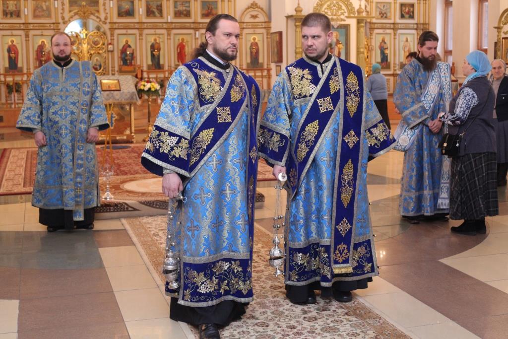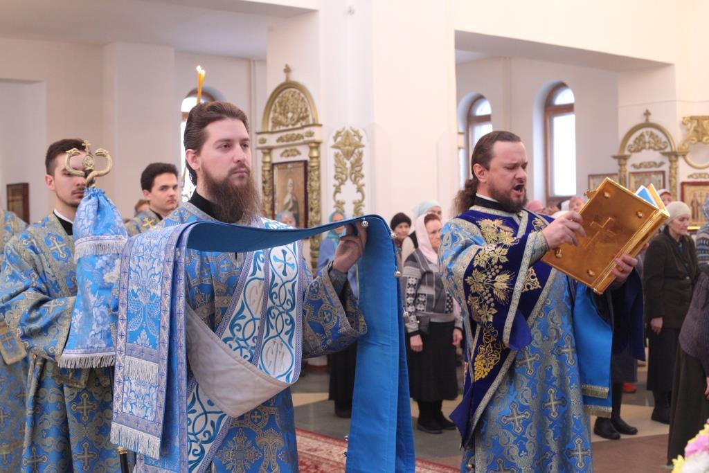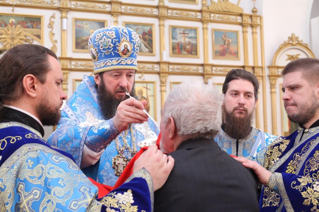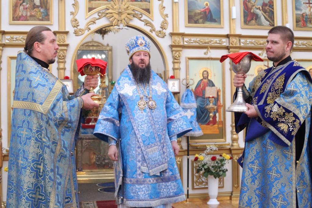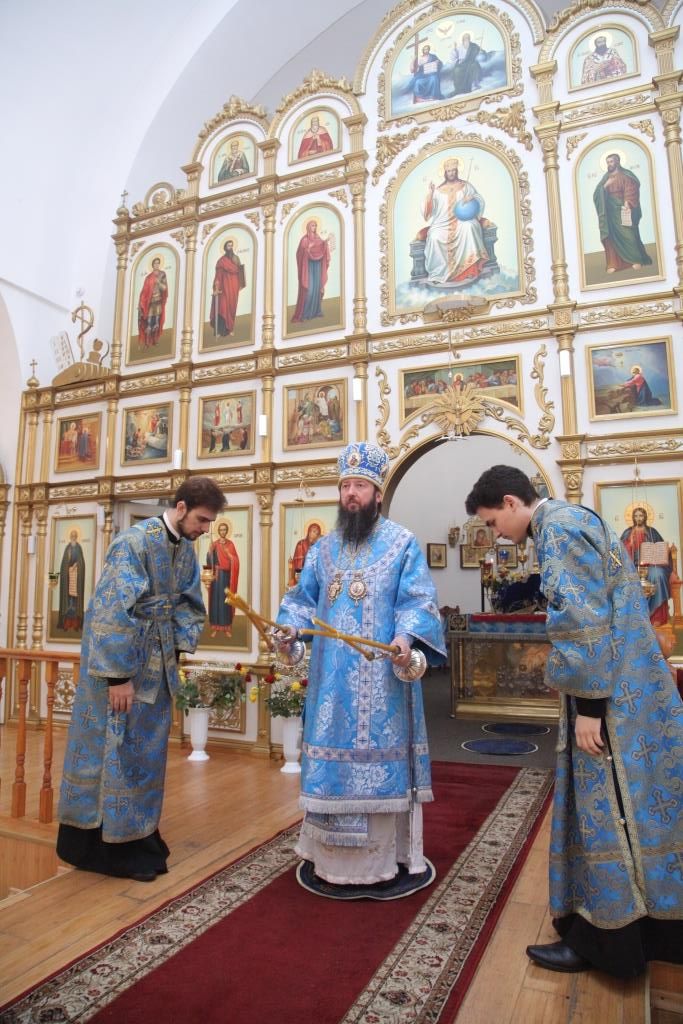 Преосвященнейший епископ Усть-Каменогорский и Семипалатинский Амфилохий возглавил служение Божественной Литургии святителя Иоанна Златоуста в кафедральном соборе во имя апостола Андрея Первозванного столицы Рудного Алтая. В праздничный день Архипастырю сослужили: духовник епархии архимандрит Спиридон (Теплухин), ключарь кафедрального собора иеромонах Никодим (Авдеев), клирики собора иерей Алексий Клепиков и иерей Константин Дьяков, иеромонах Евгений (Щеглов), протодиаконы Георгий Засыпкин и Андрей Дудник, иеродиакон Мефодий (Шевчук), диакон Алексий Горбунов.