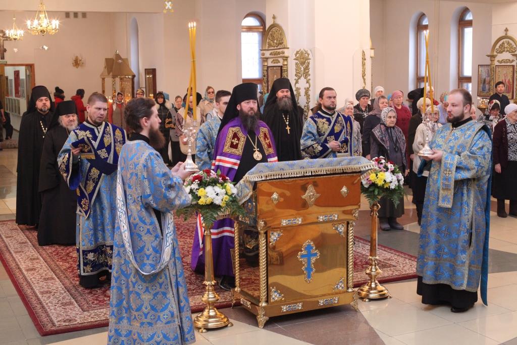 За праздничным богослужением молились: братия Свято-Троицкого мужского монастыря, сотрудники Усть-Каменогорского епархиального управления, прихожане главного храма Восточного Казахстана.